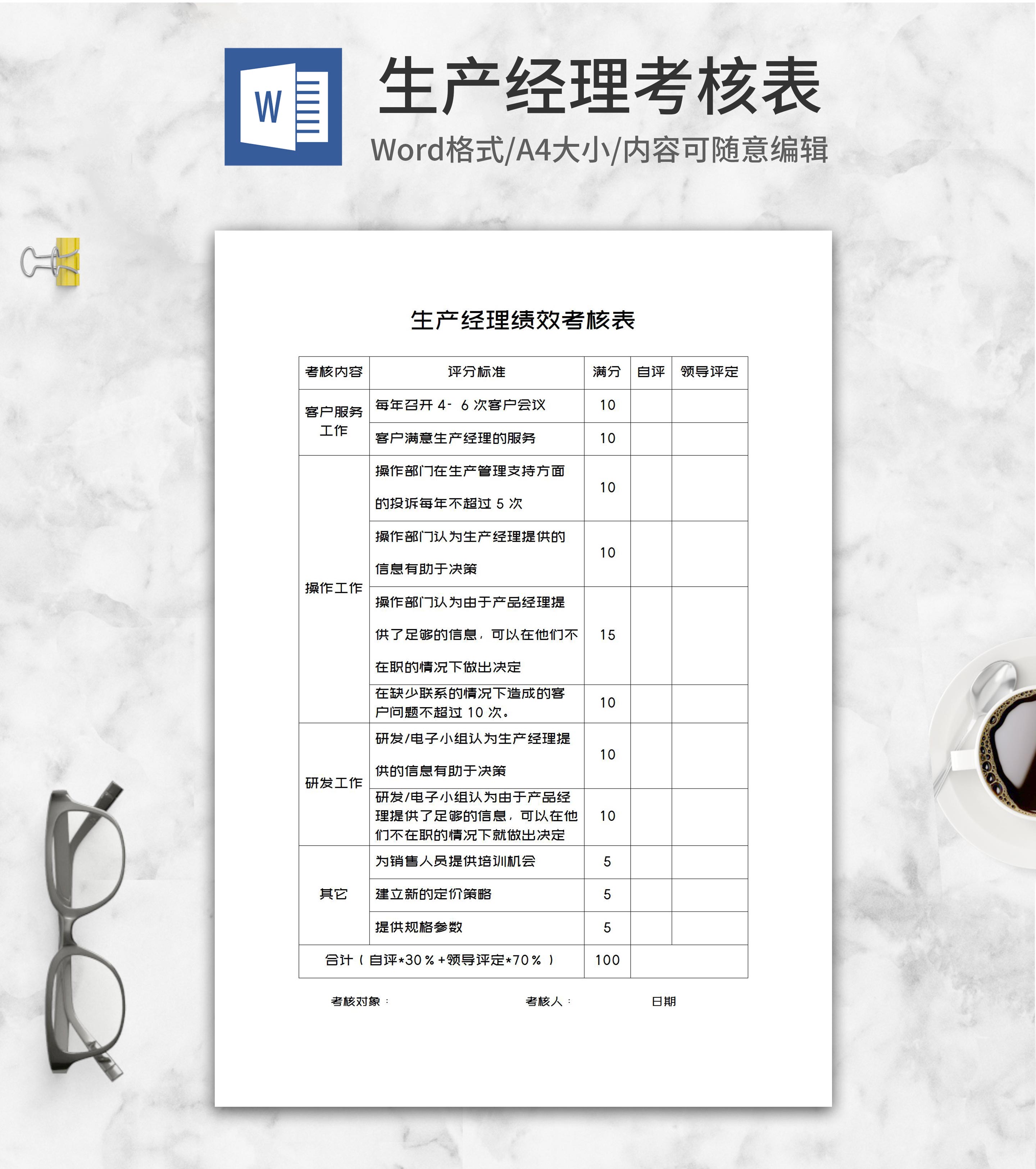 生产经理绩效考核表word模板