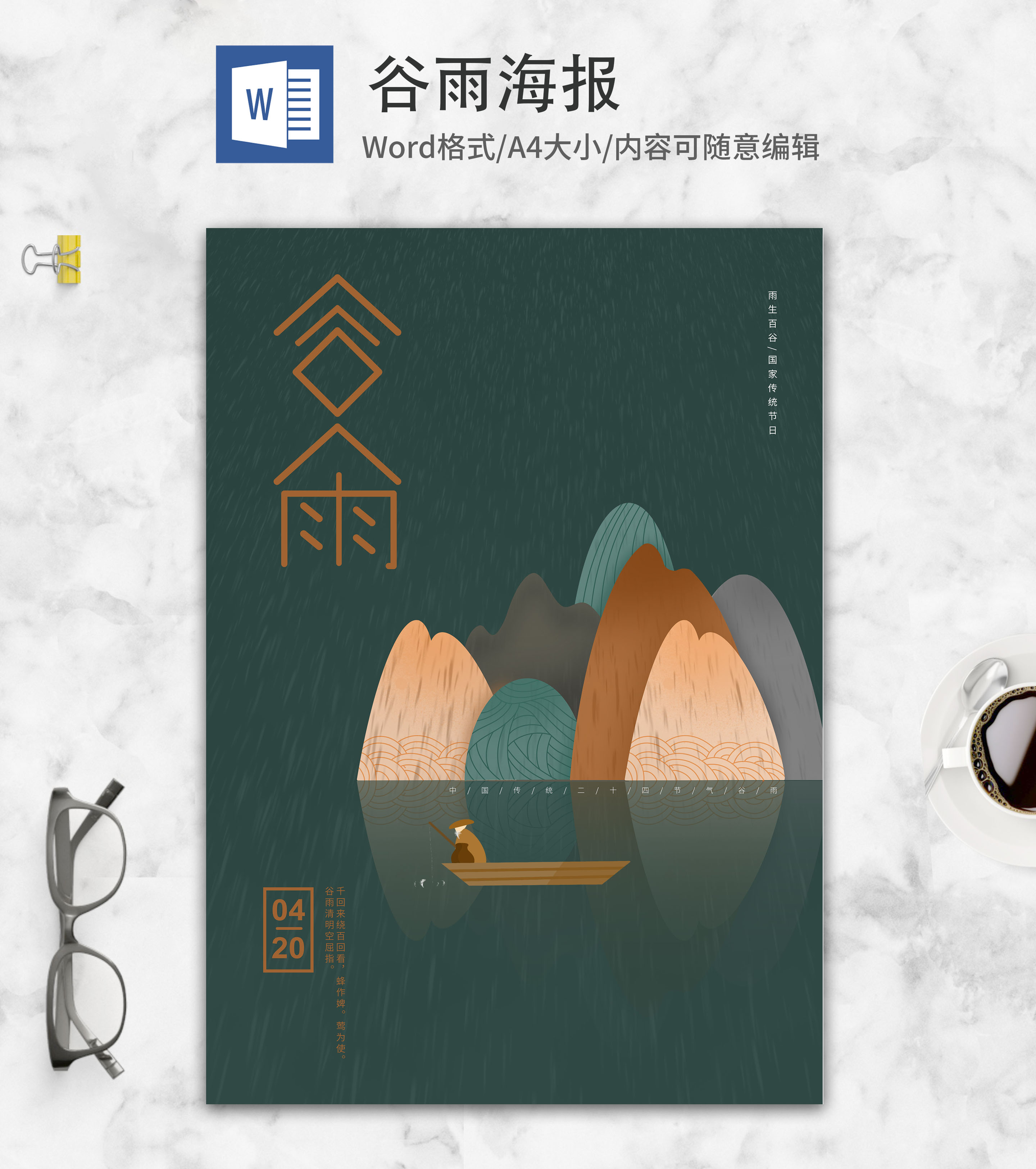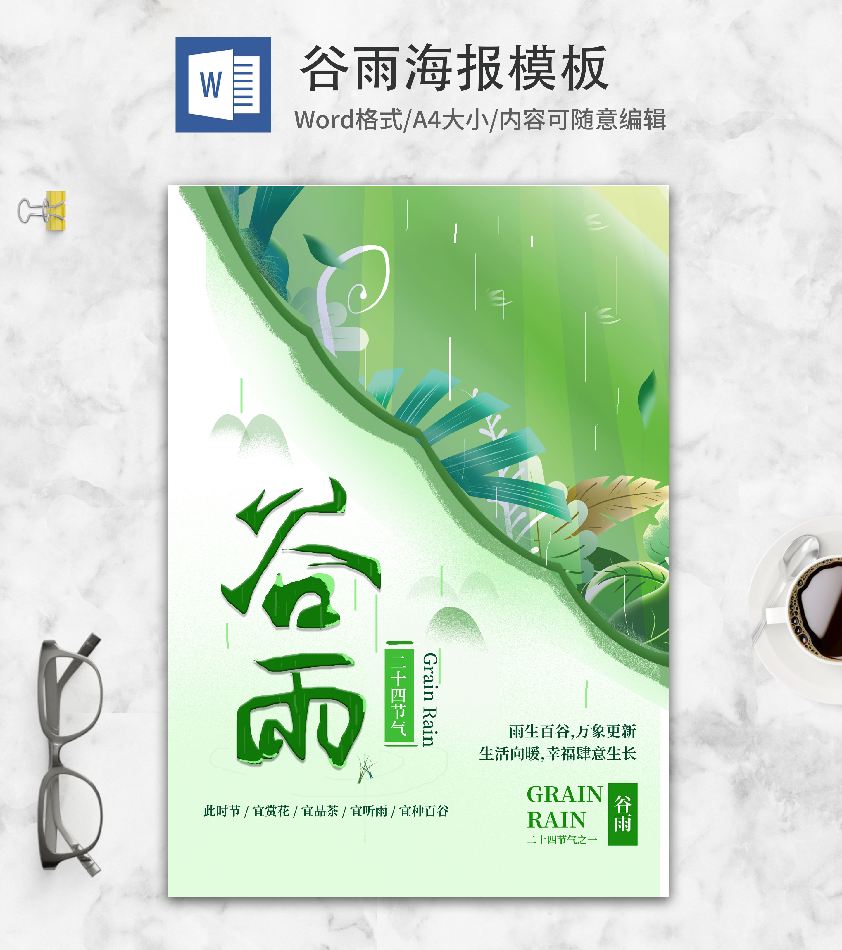 绿色小清新谷雨节气海报