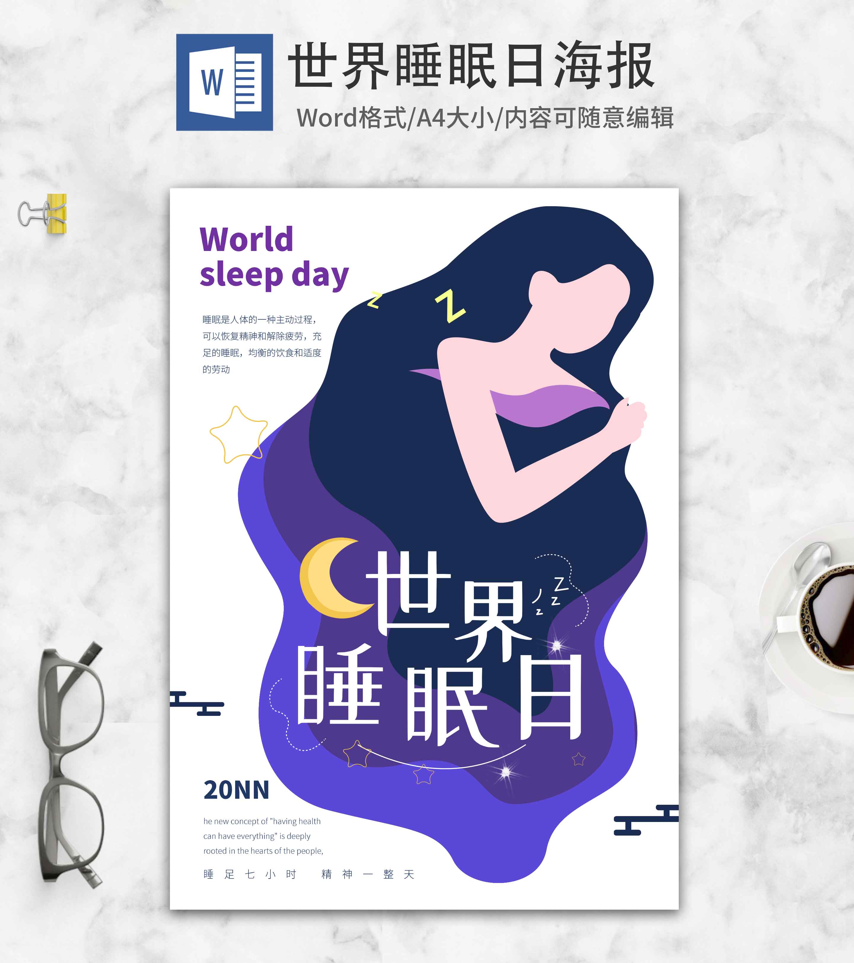 紫色简约世界睡眠日海报