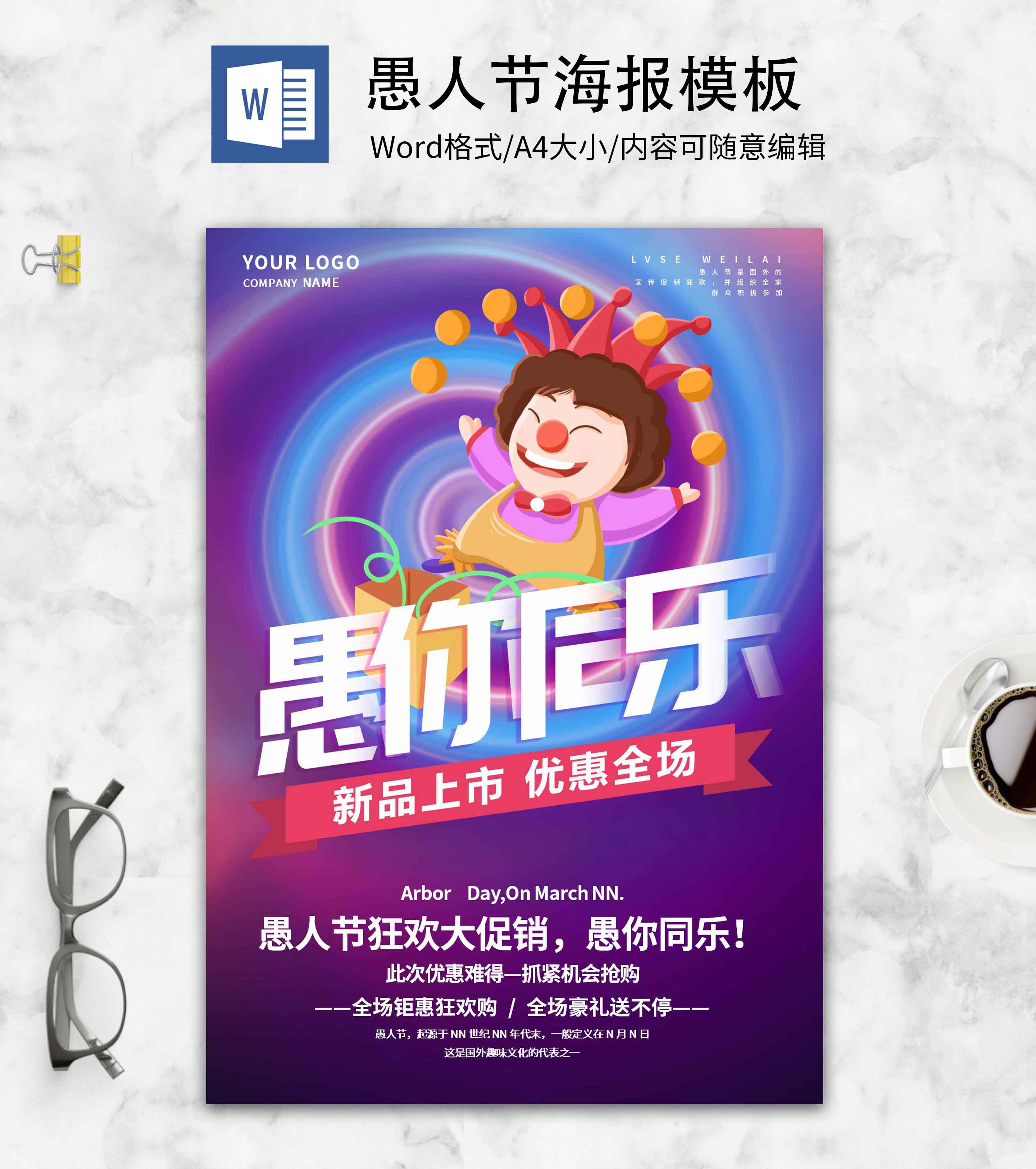 炫彩卡通愚人节创意海报