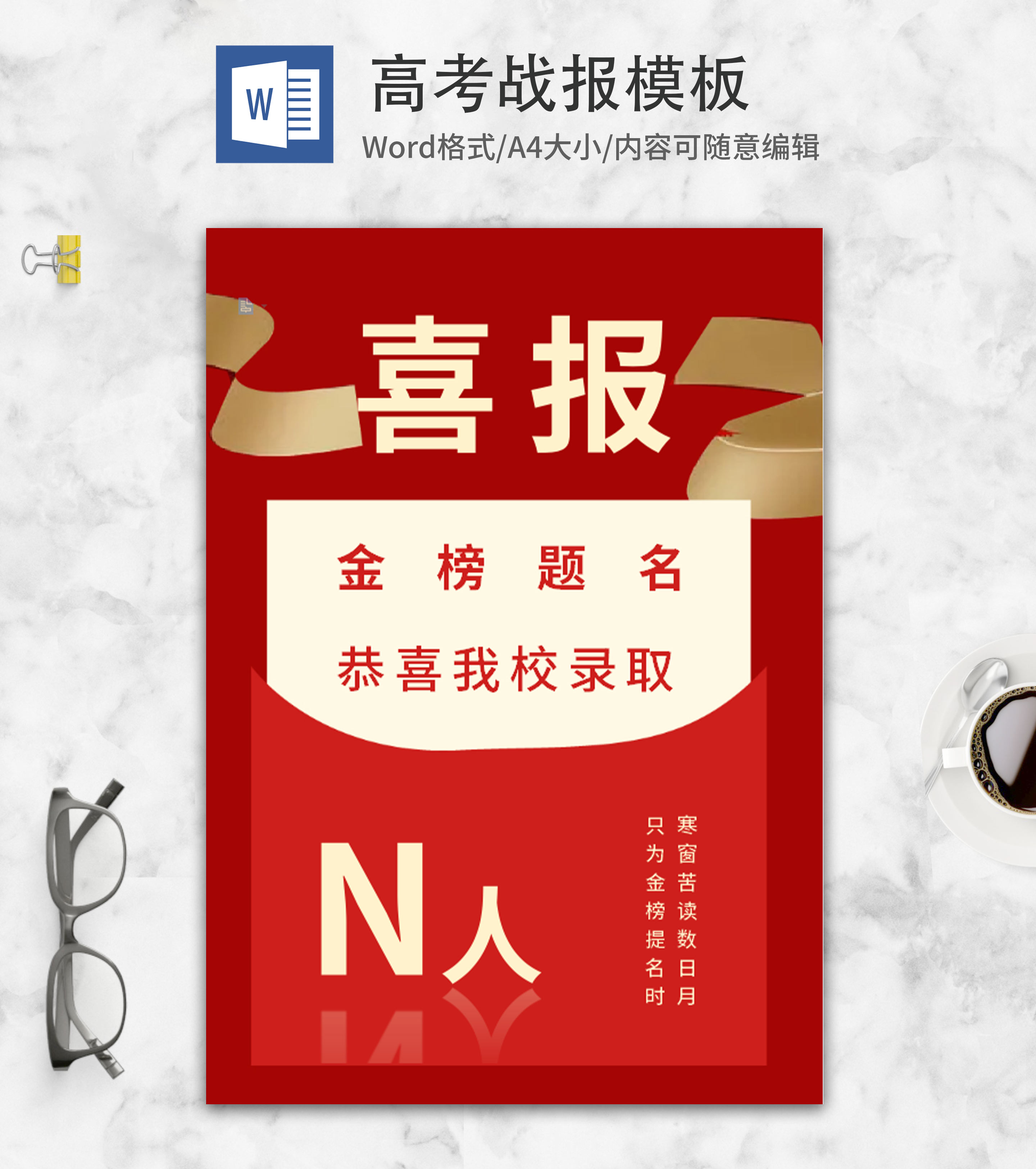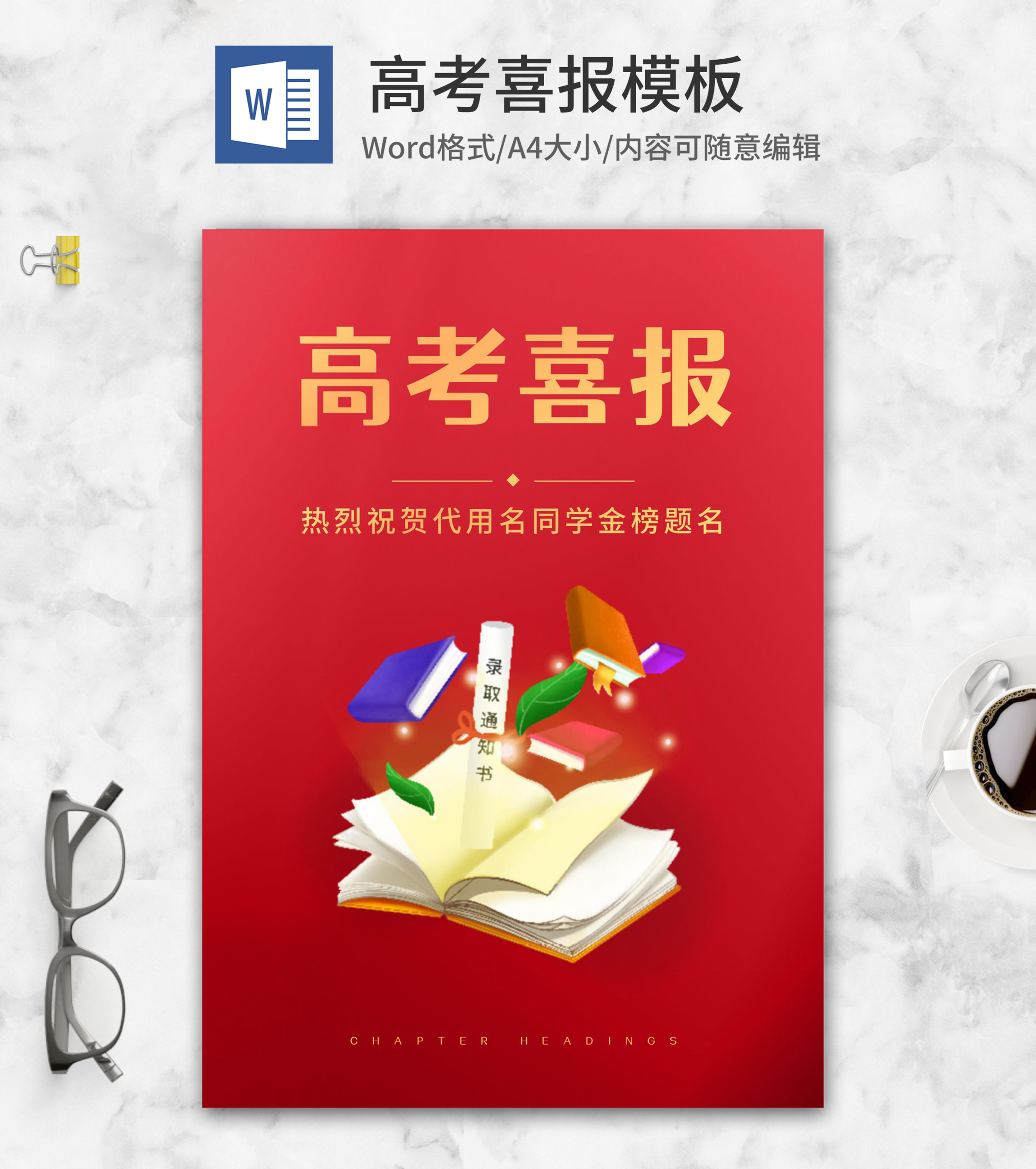 红色书籍高考录取喜报word模板
