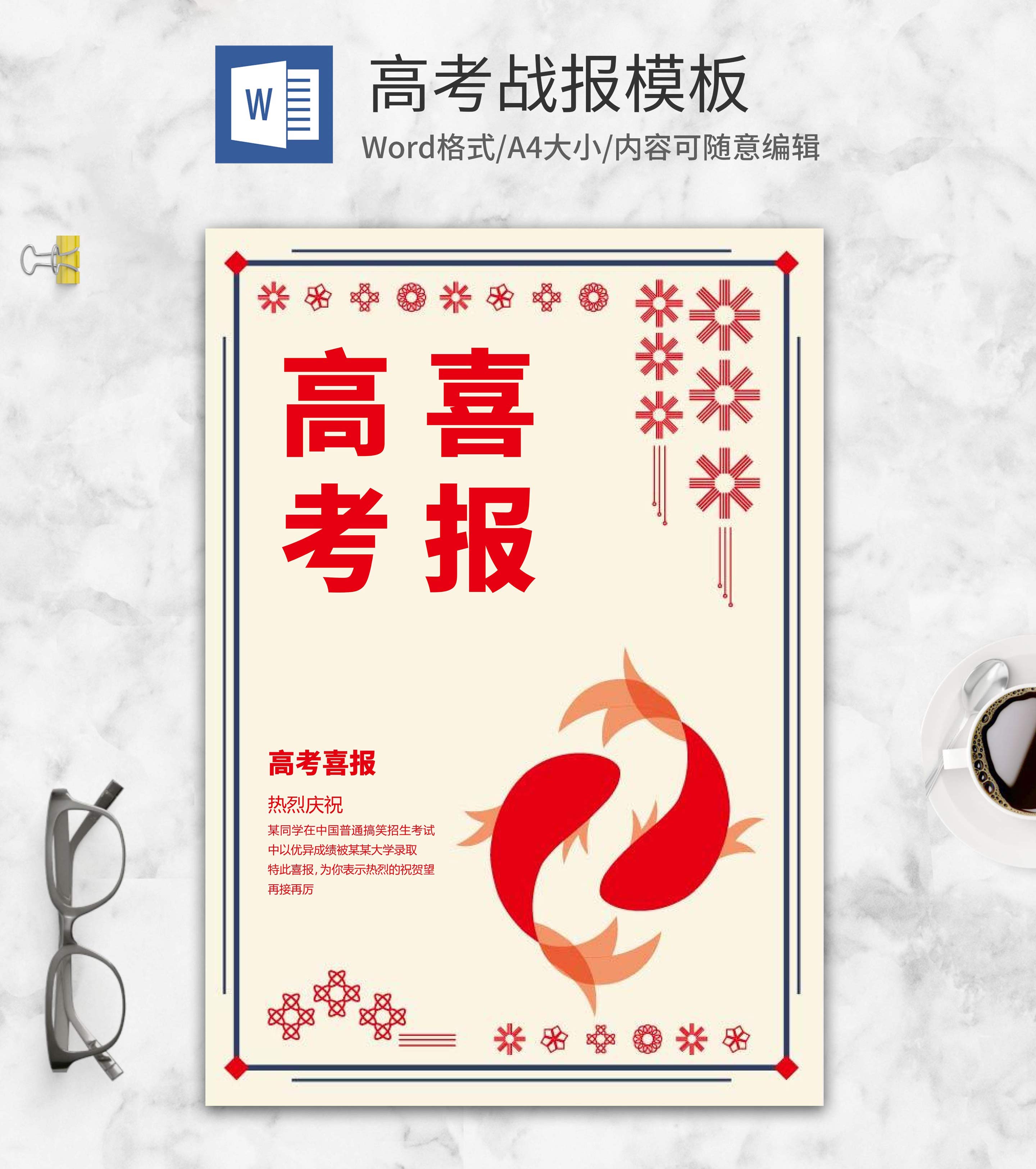 中国风剪纸窗花高考喜报word模板