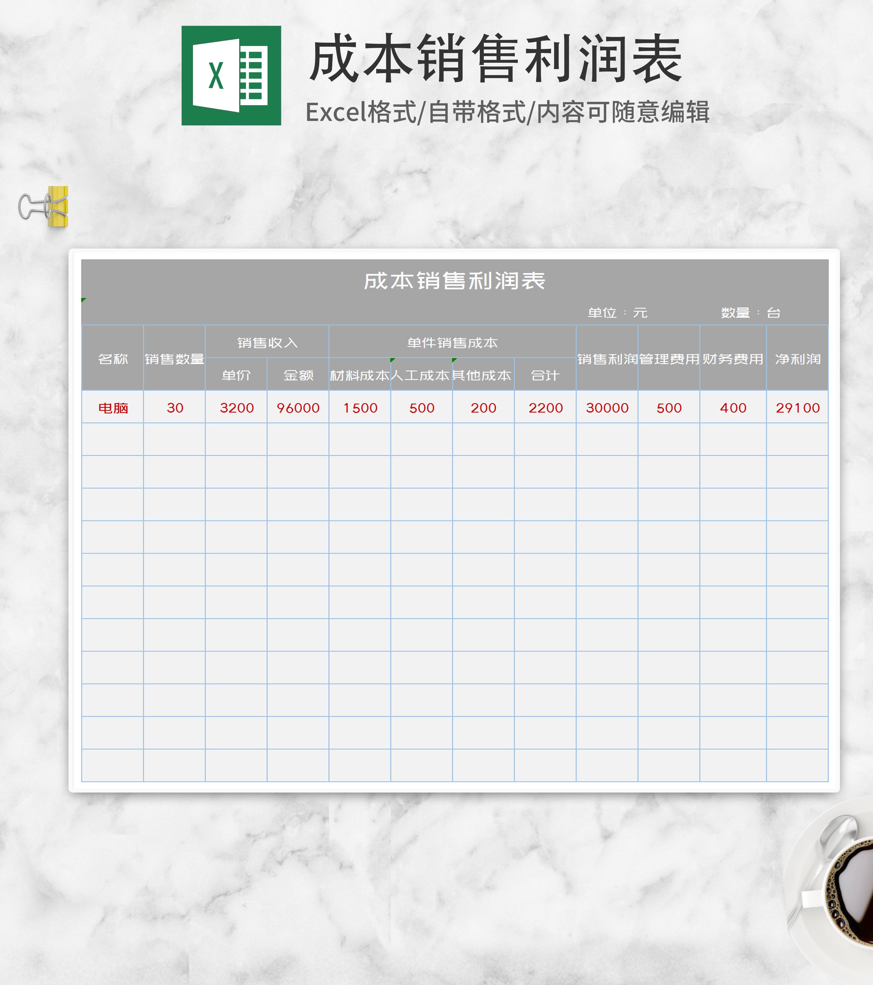 销售利润分析表Excel模板