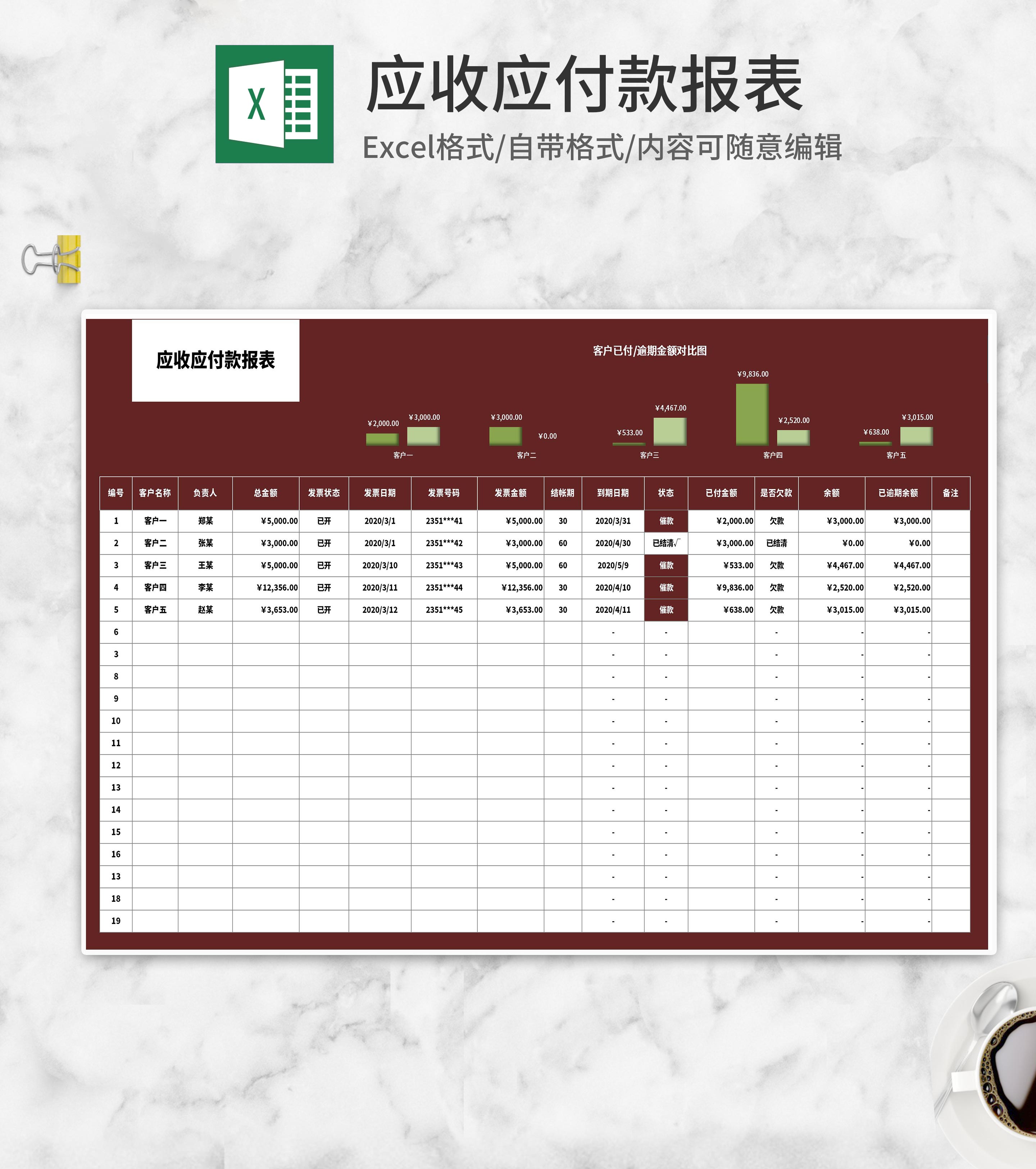 红色客户应收应付款报表Excel模板