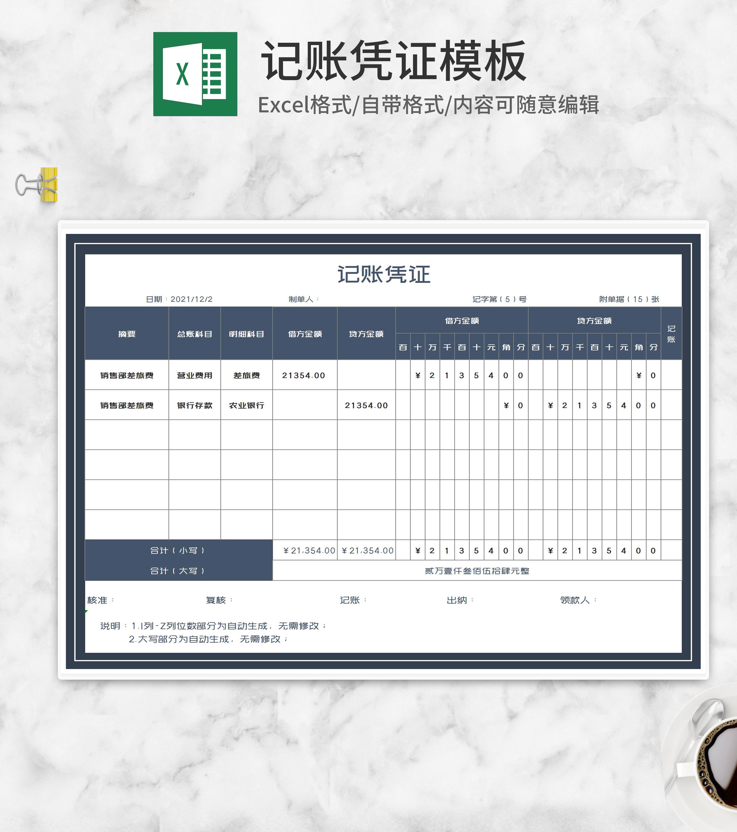 公司部门记账凭证Excel模板