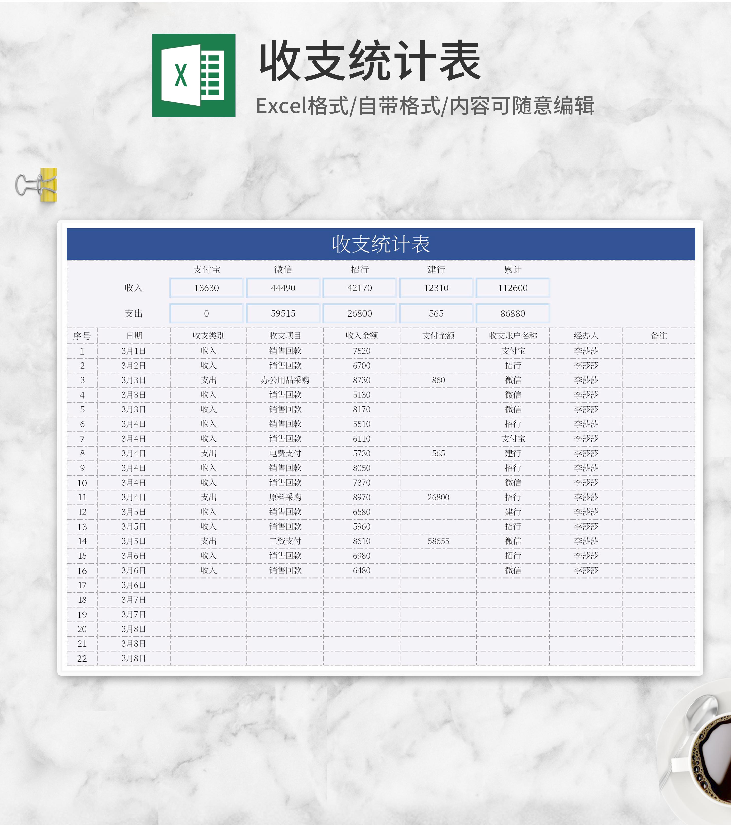 蓝色个人收支统计表Excel模板