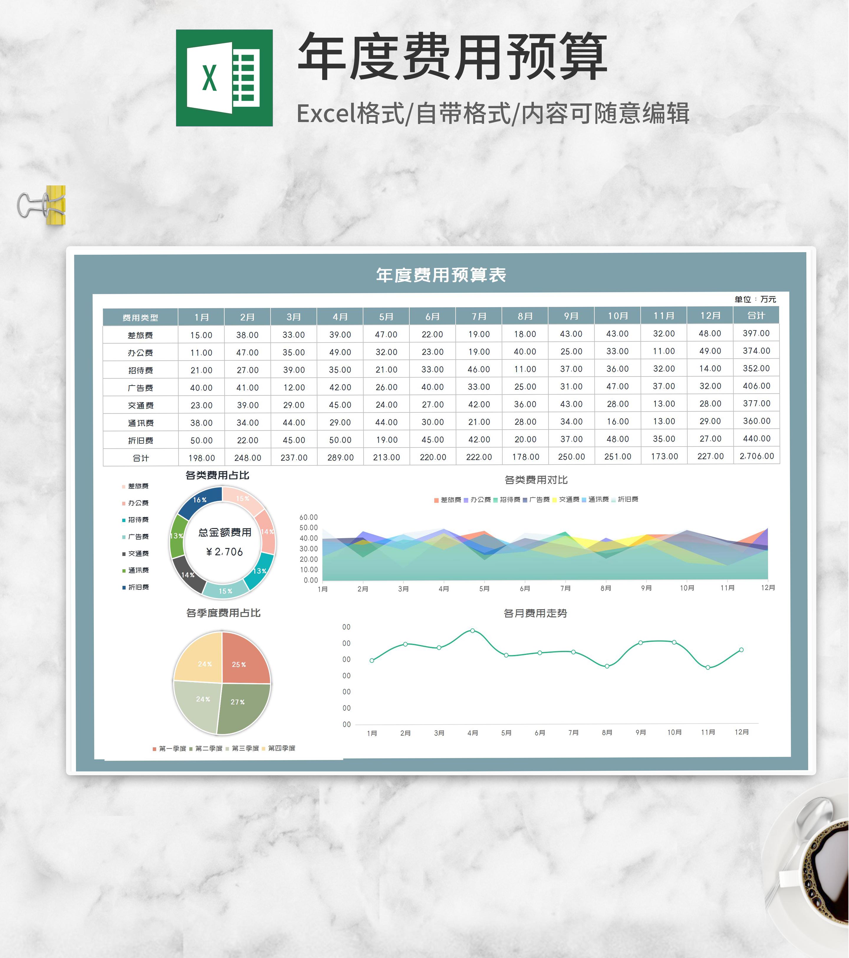 公司年度支出费用预算表Excel模板