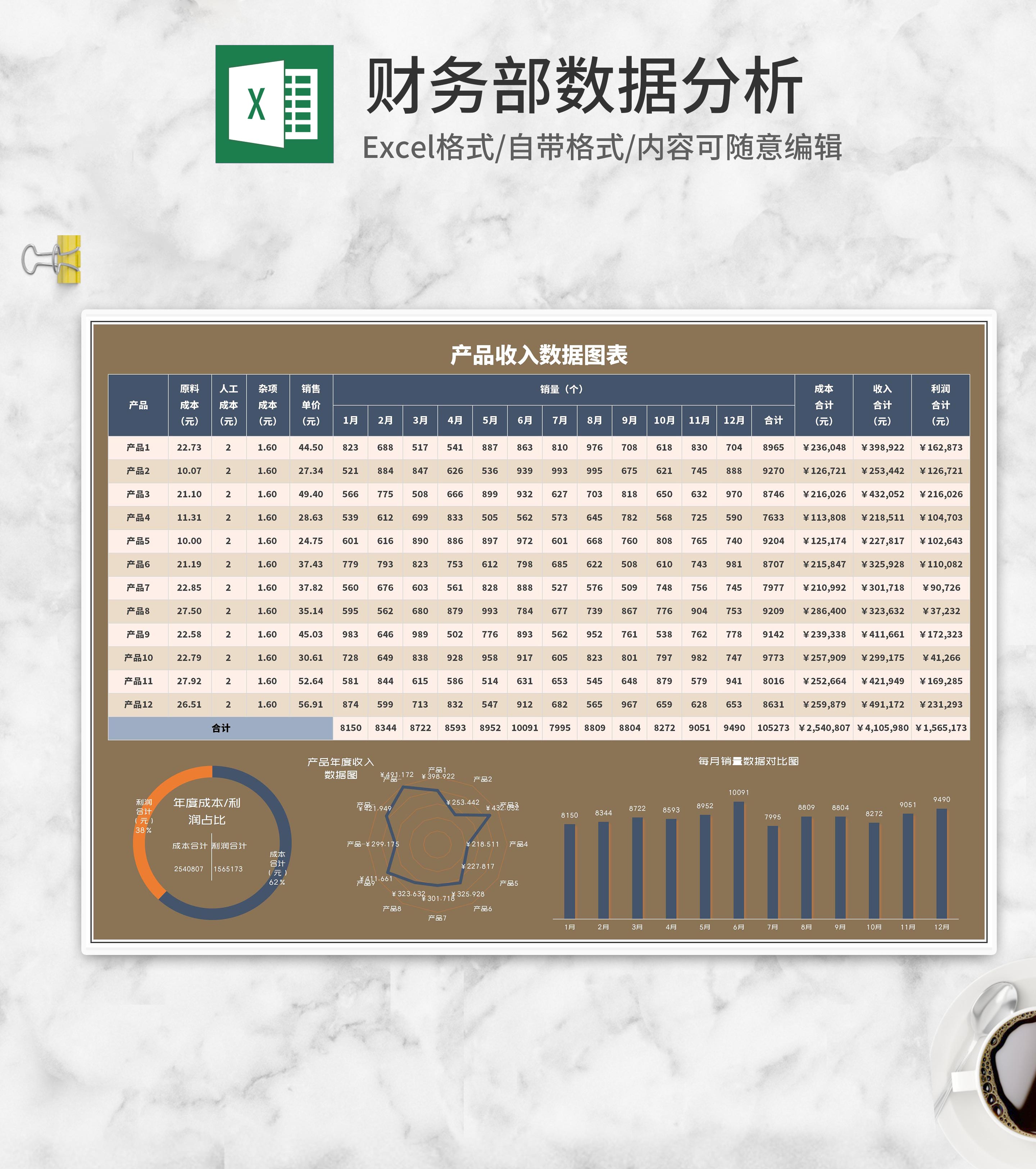 财务部年终产品数据分析Excel模板