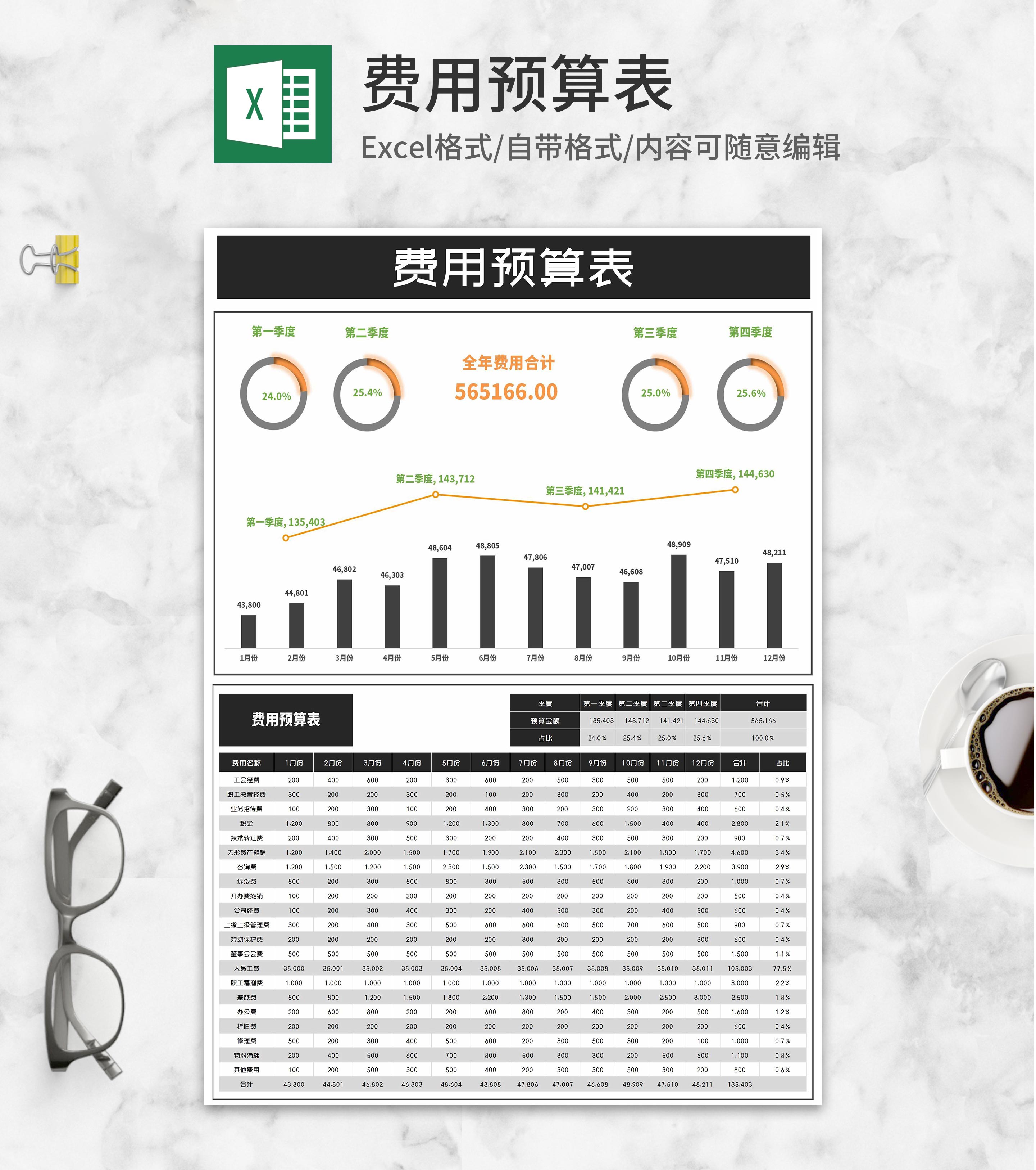 年度季度费用预算明细表Excel模板