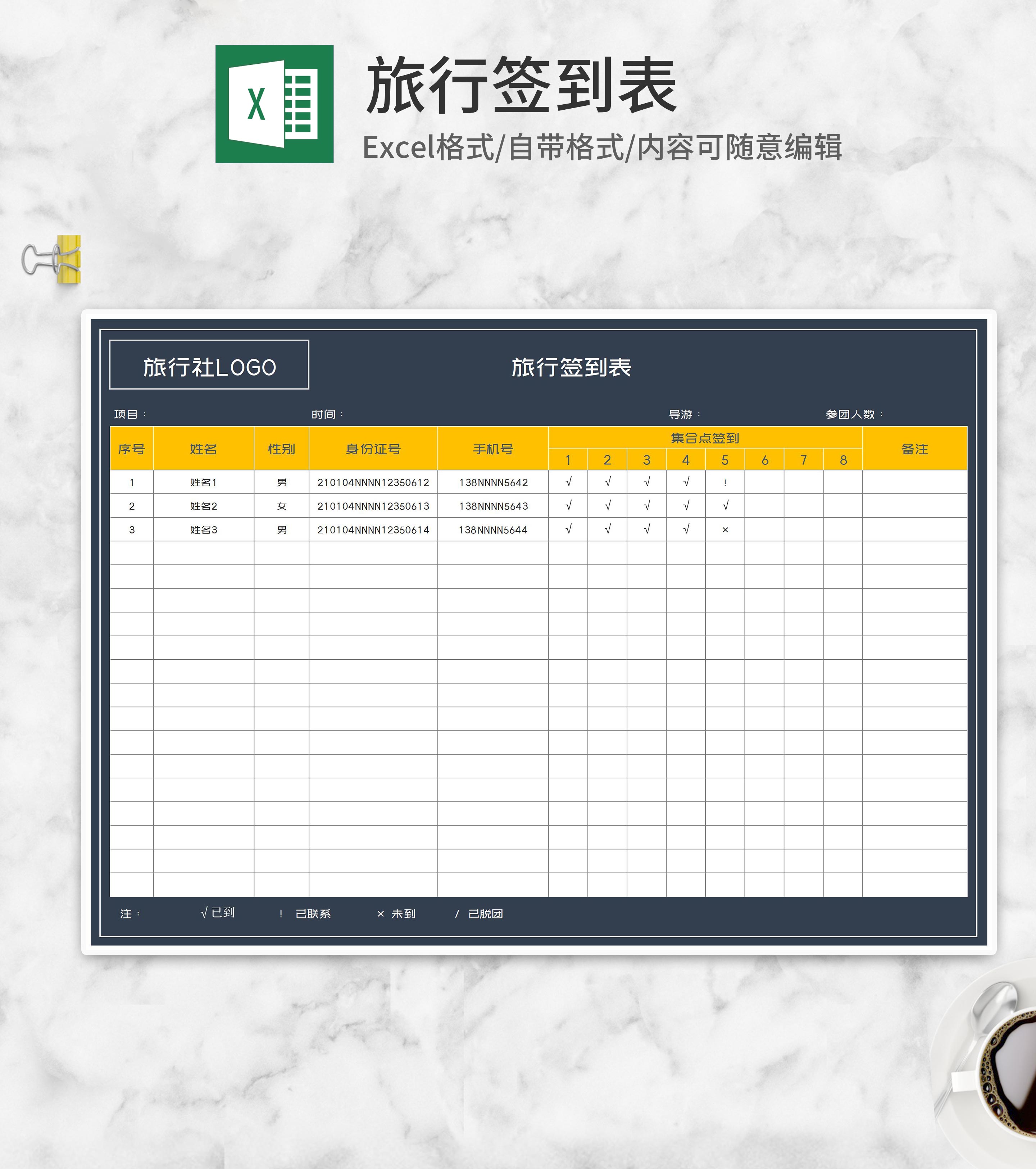 旅行社签到表Excel模板