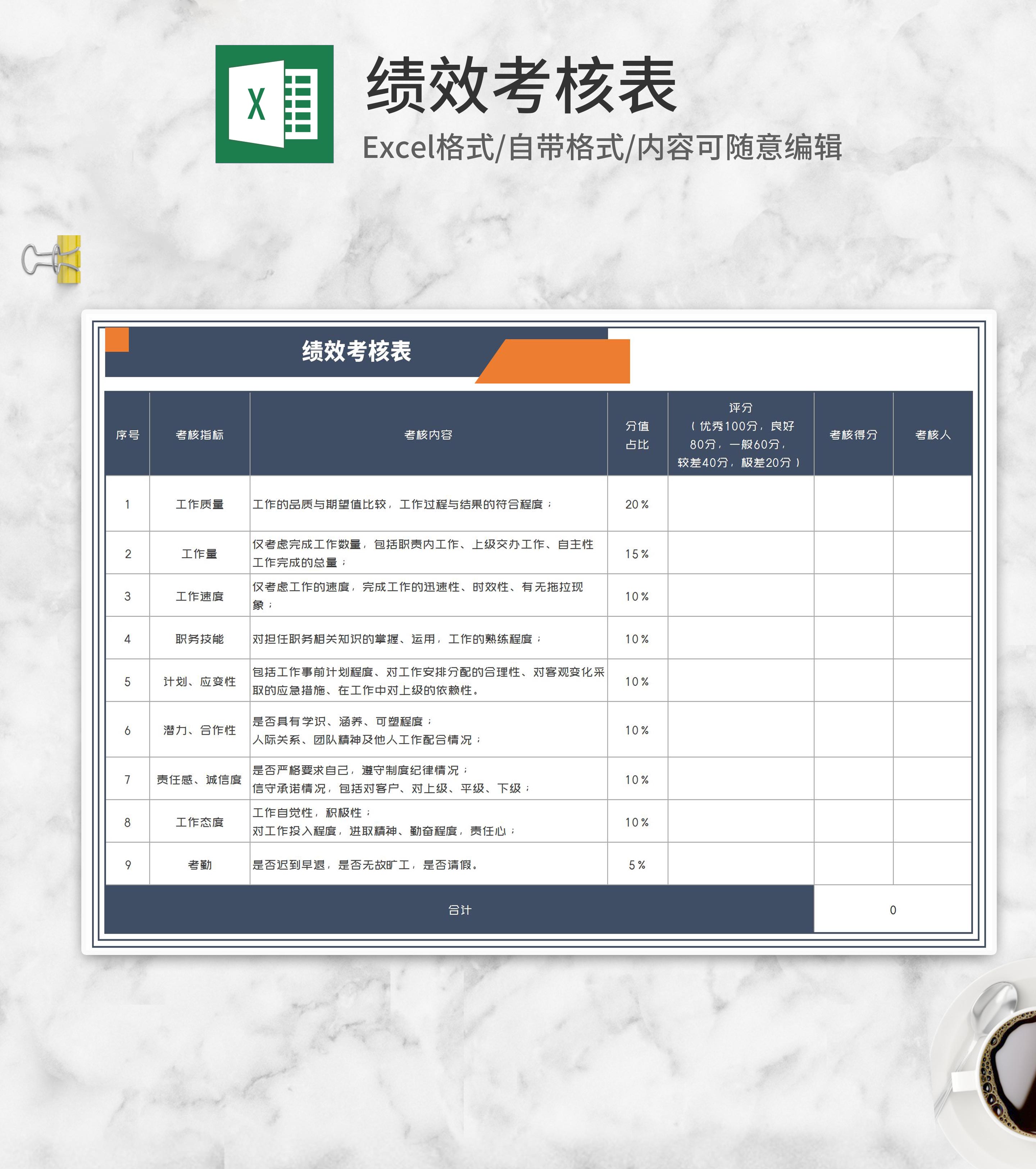深蓝公司岗位绩效考核表Excel模板