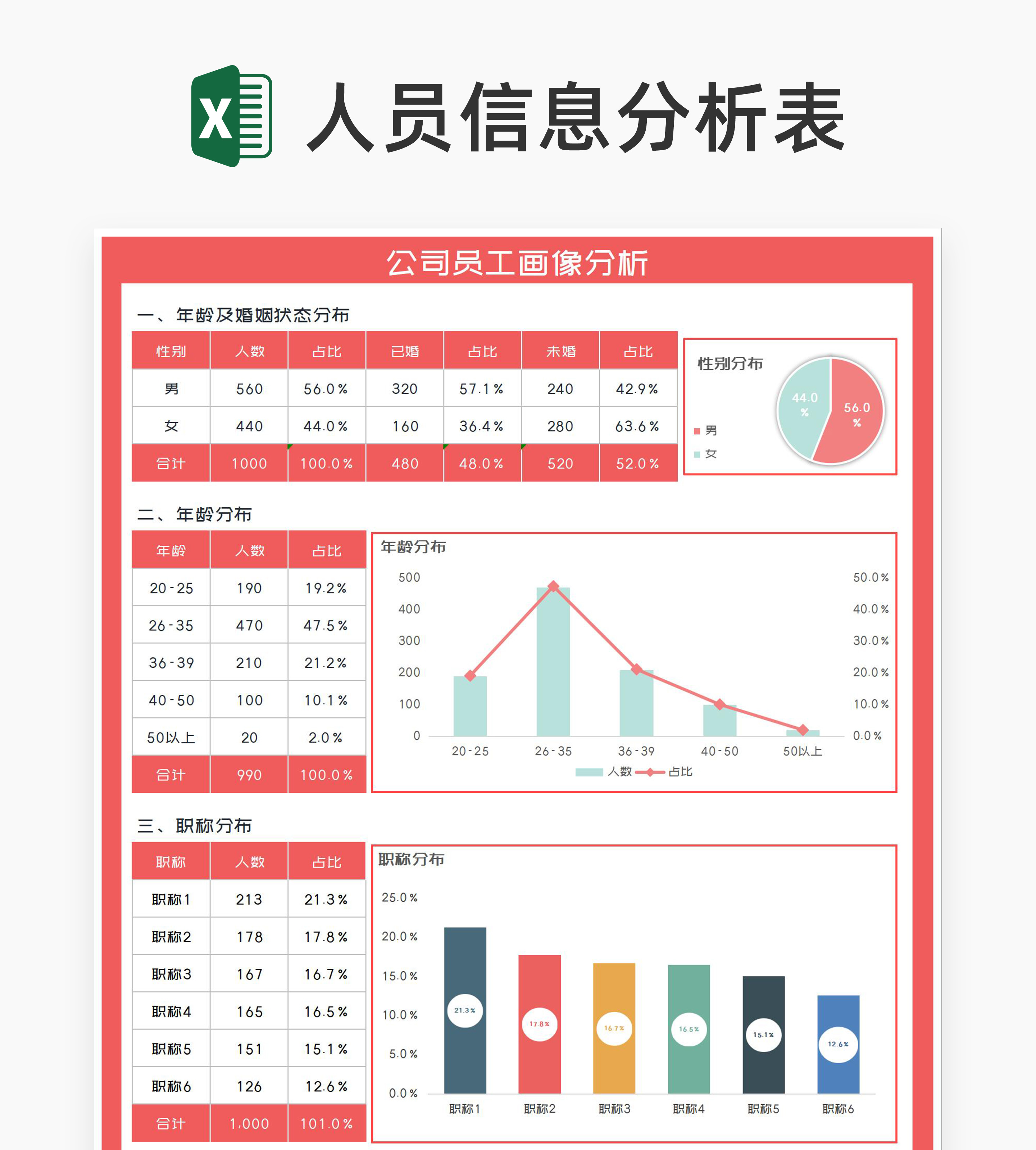 小清新公司员工画像分析Excel模板