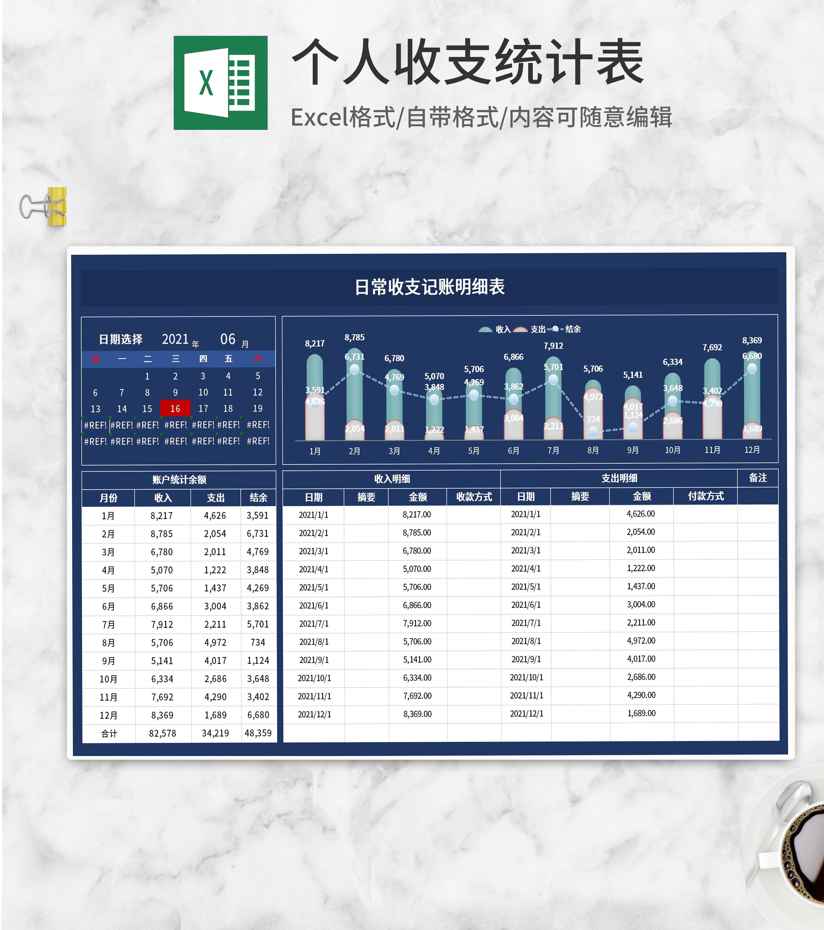 深蓝日常收支记账明细表Excel模板