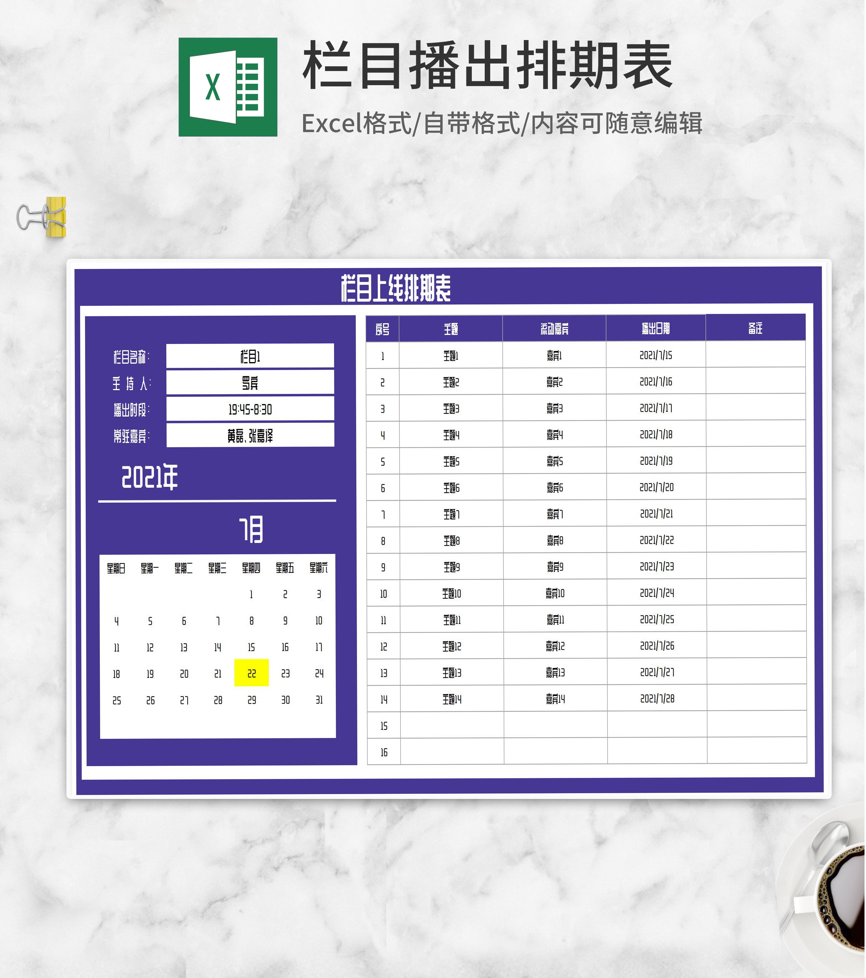 紫色栏目上线排期表Excel模板