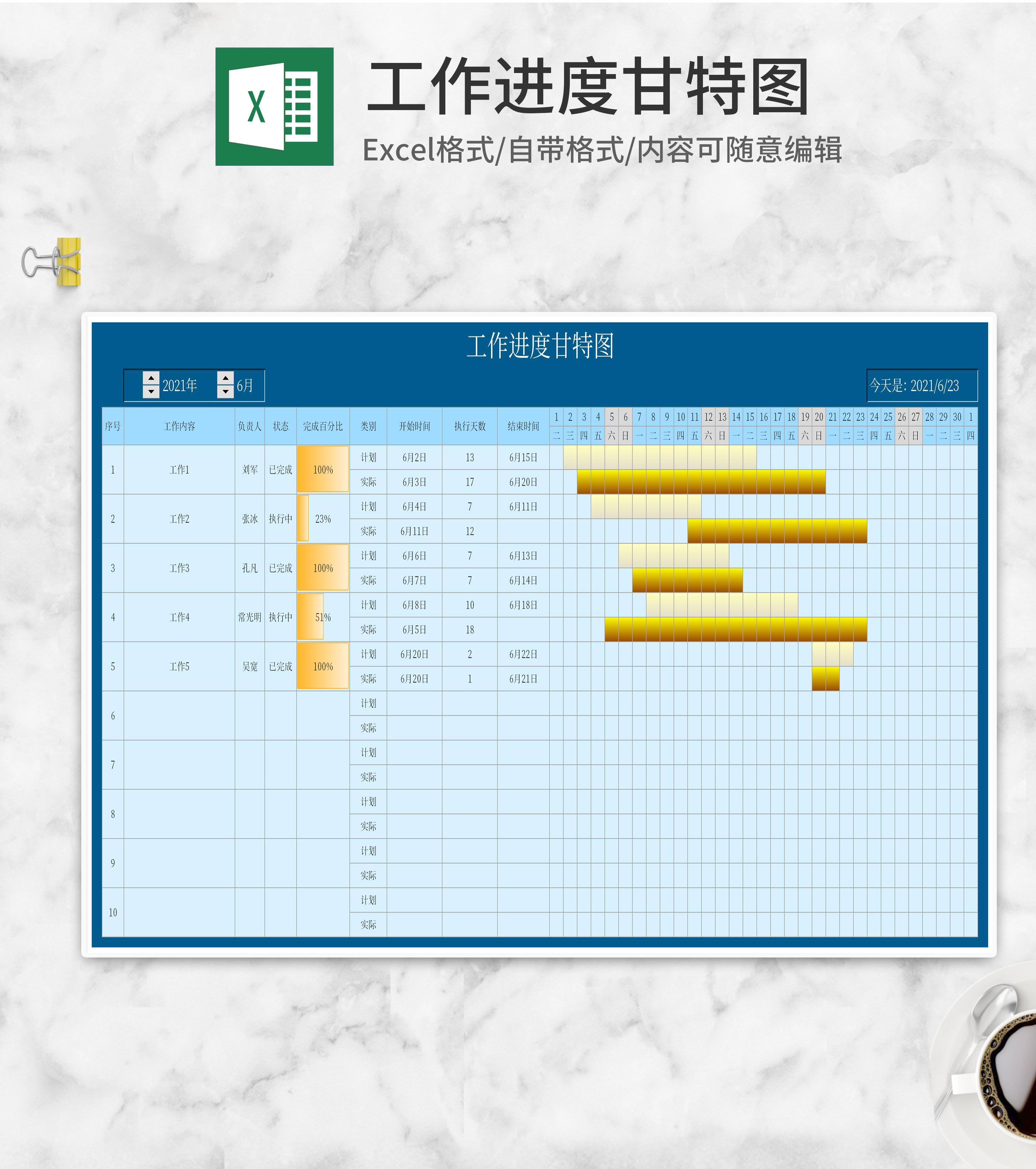 商务风任务行程进度甘特图Excel模板