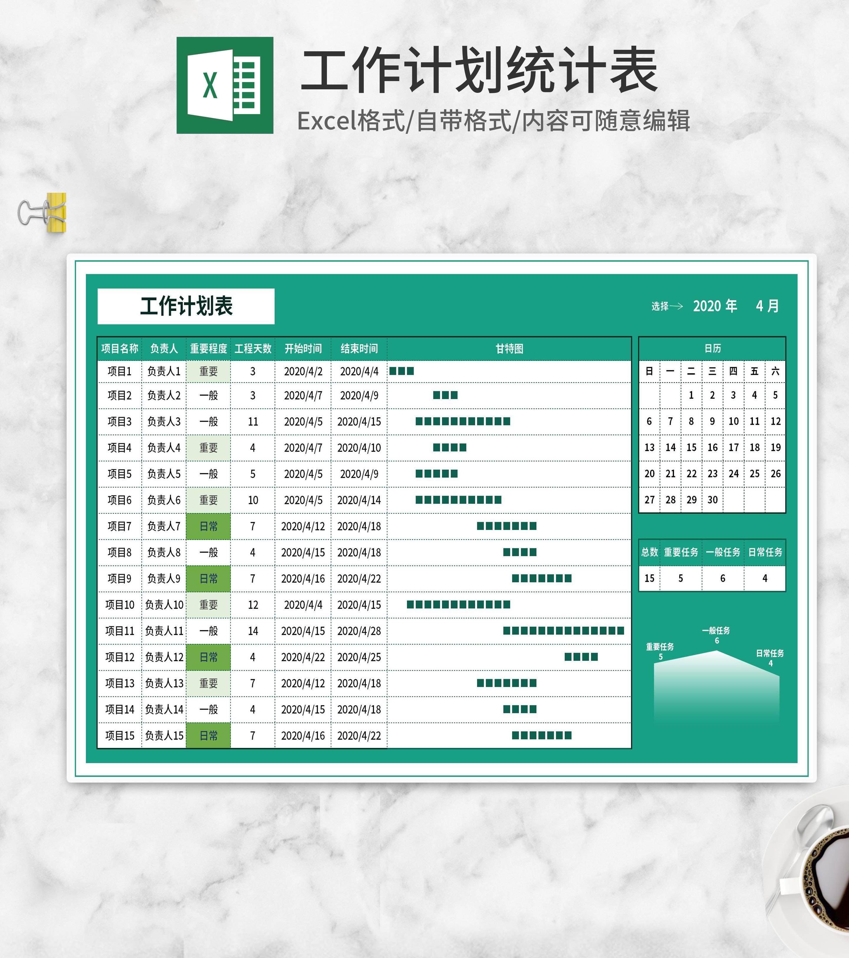 项目工作计划统计表Excel模板