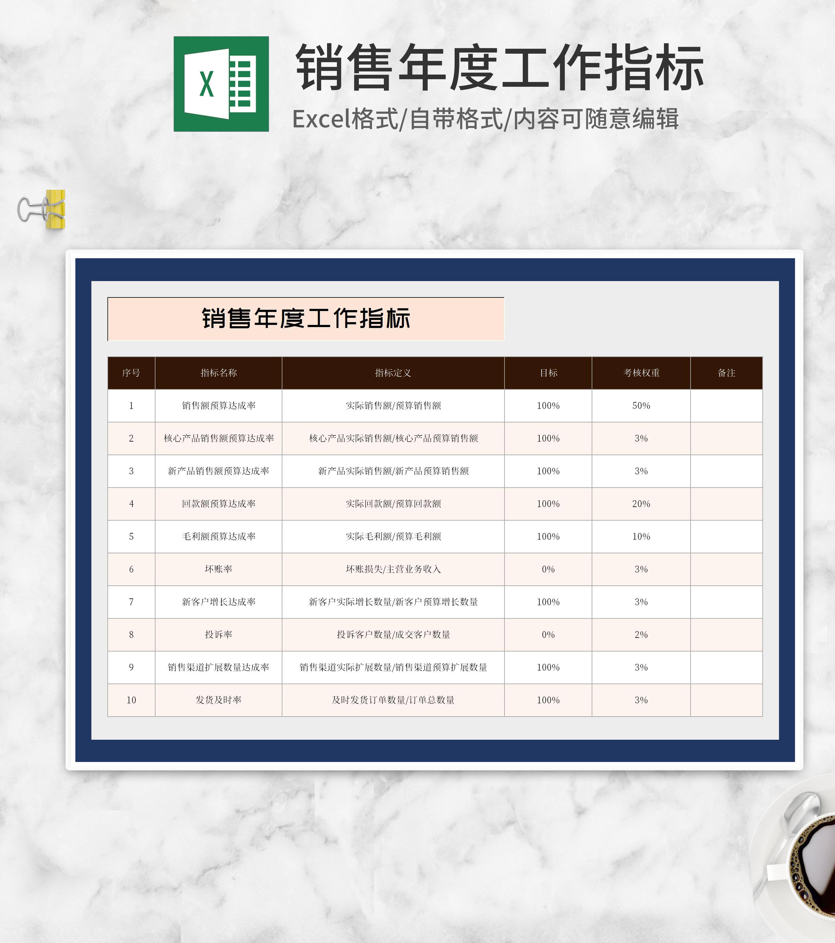 销售部门年度工作指标Excel模板