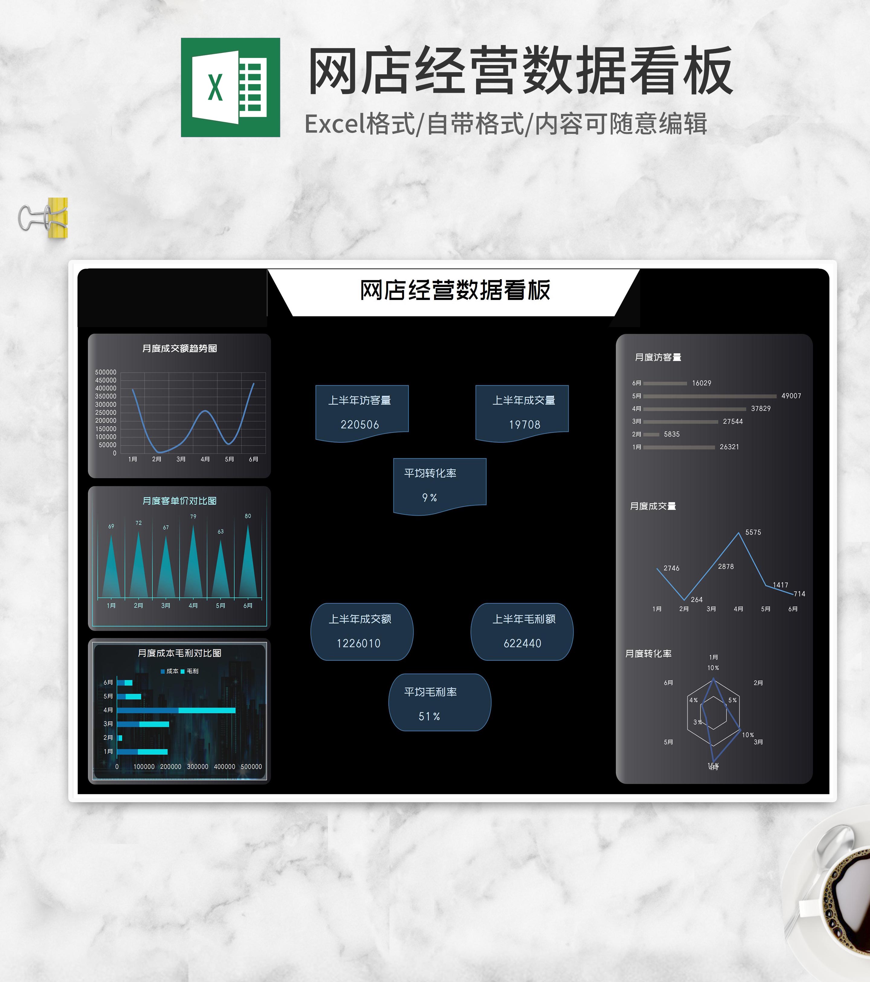 网店月度经营数据看板Excel模板