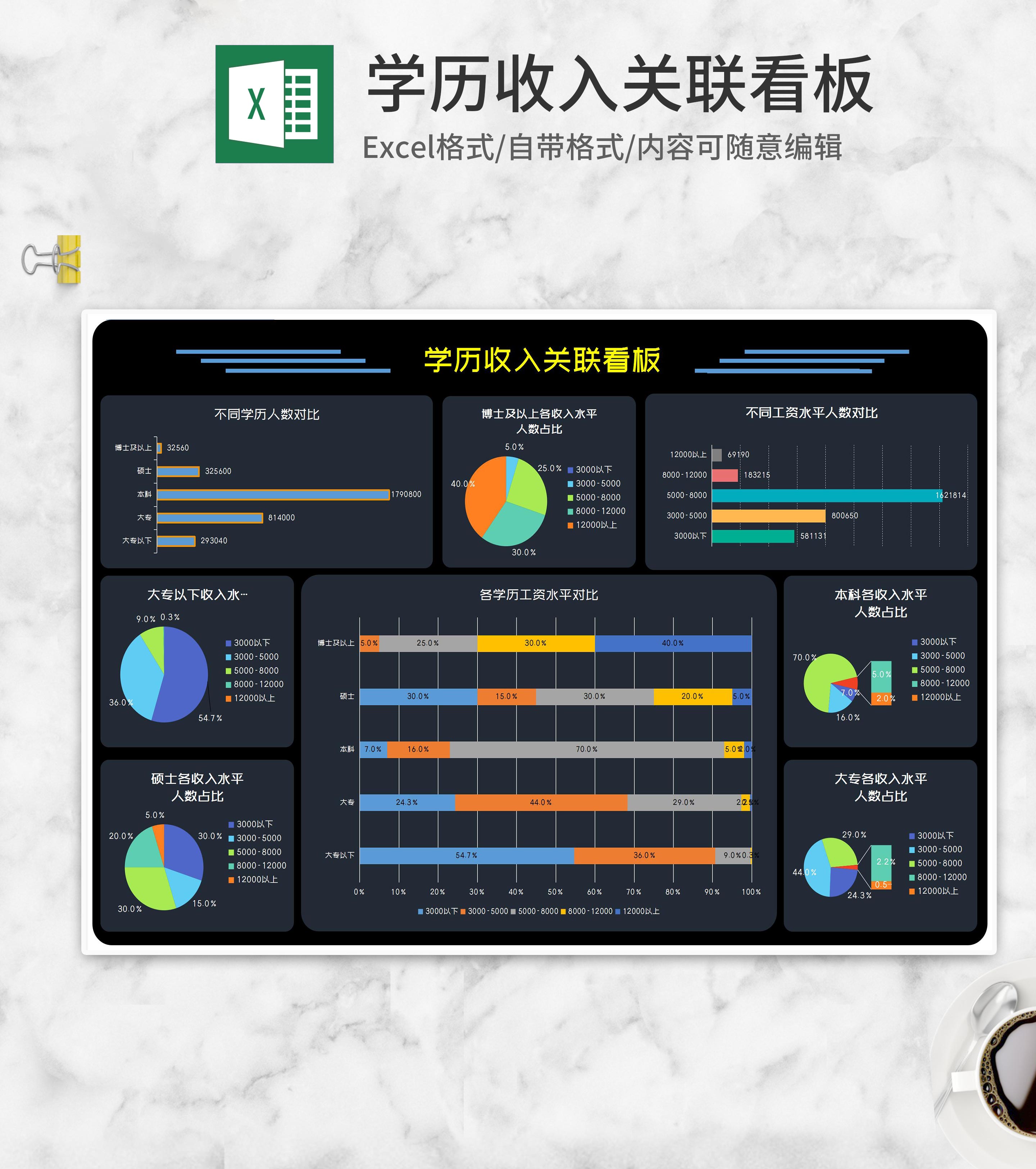 各学历收入关联看板Excel模板