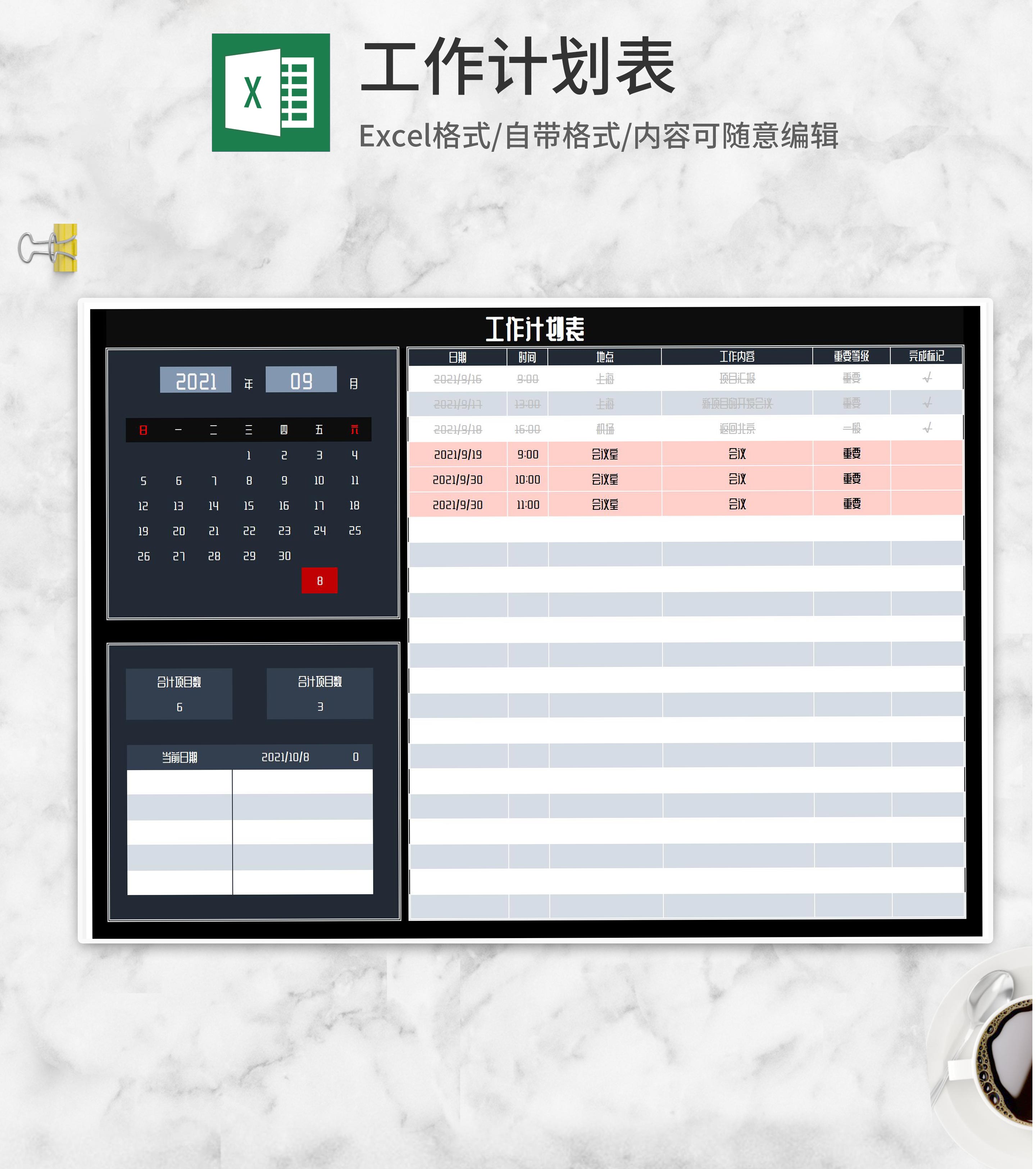 商务工作计划汇总明细Excel模板
