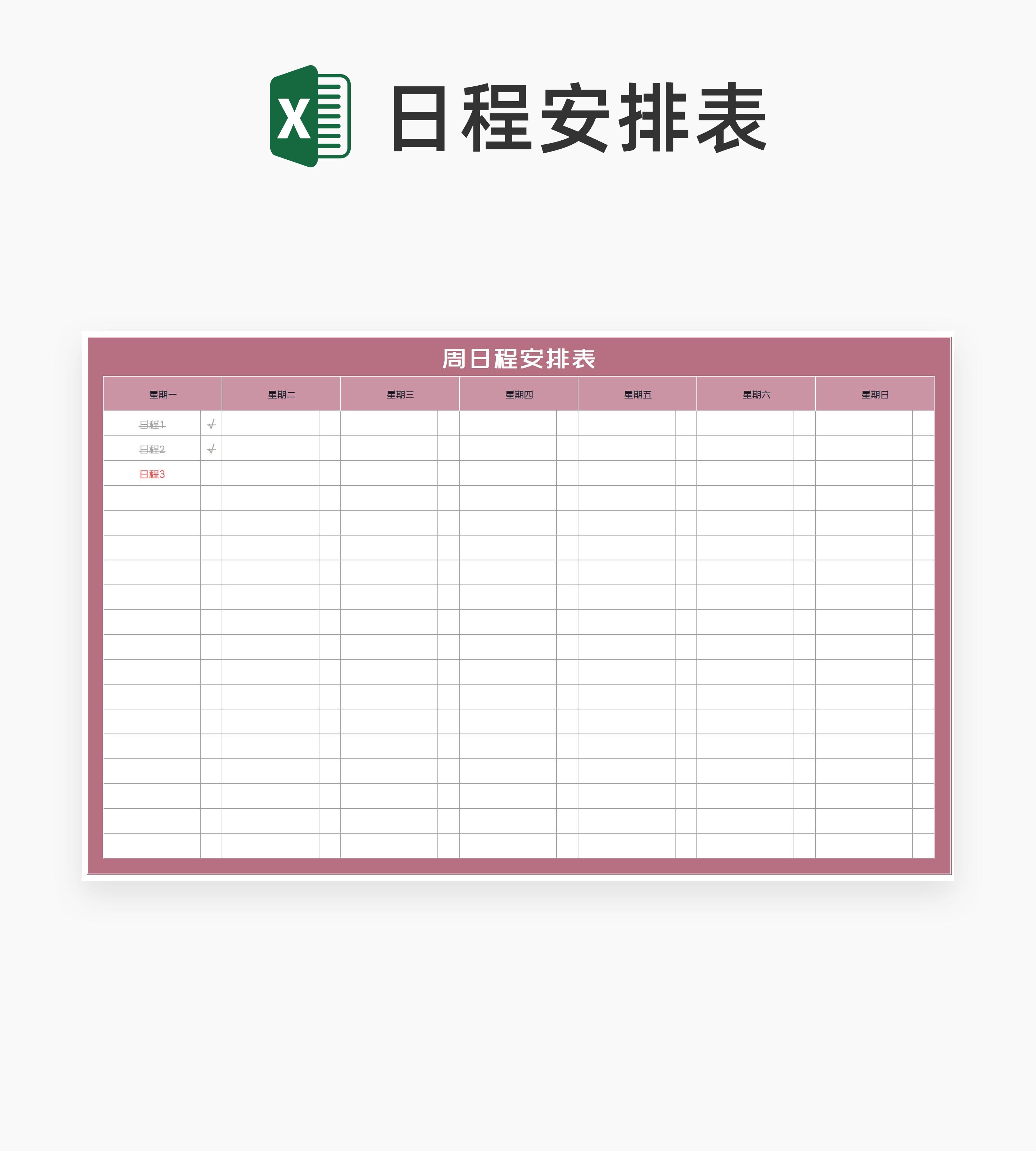 周日程安排明细汇总表Excel模板