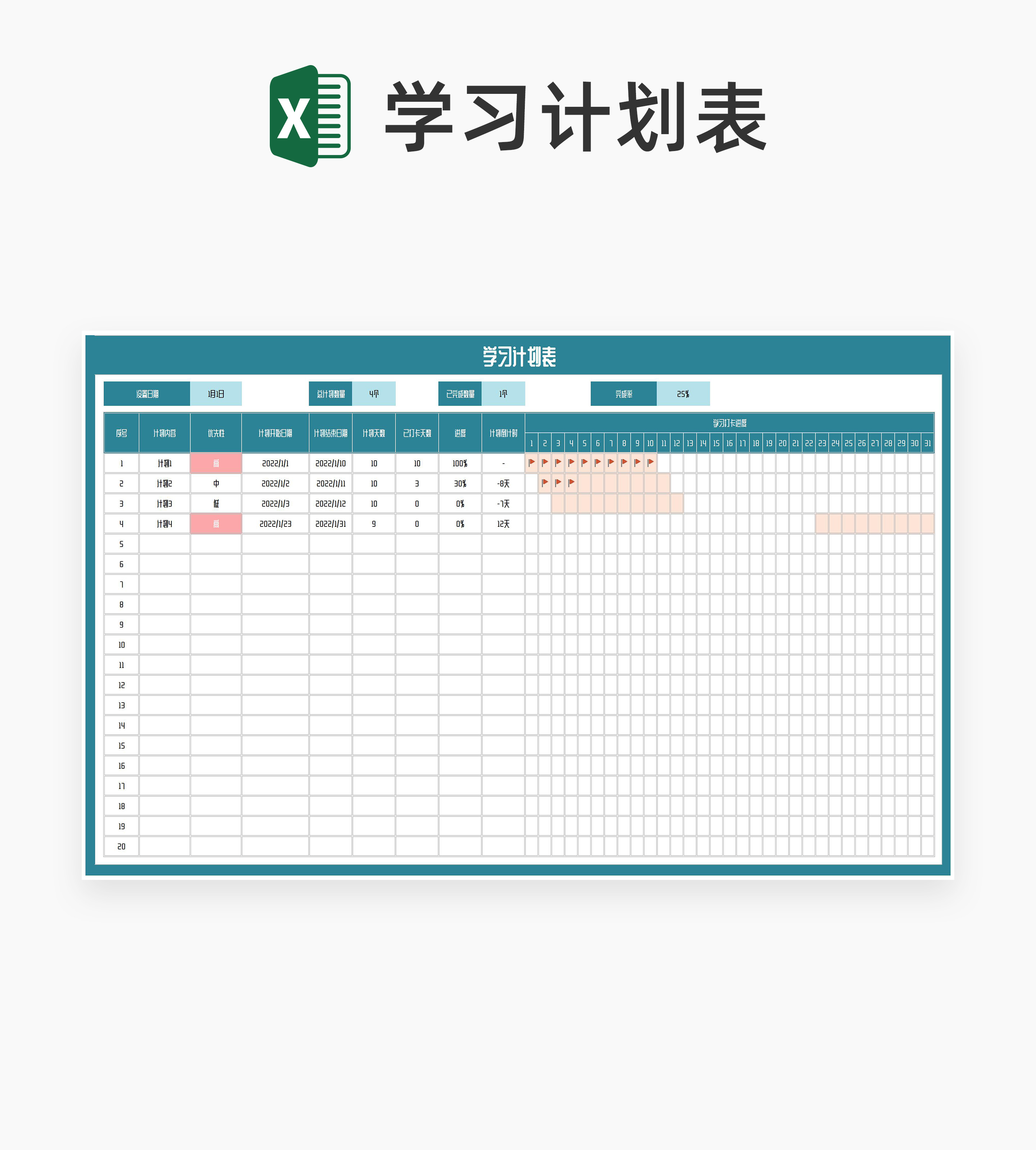 学生学习计划打卡表Excel模板