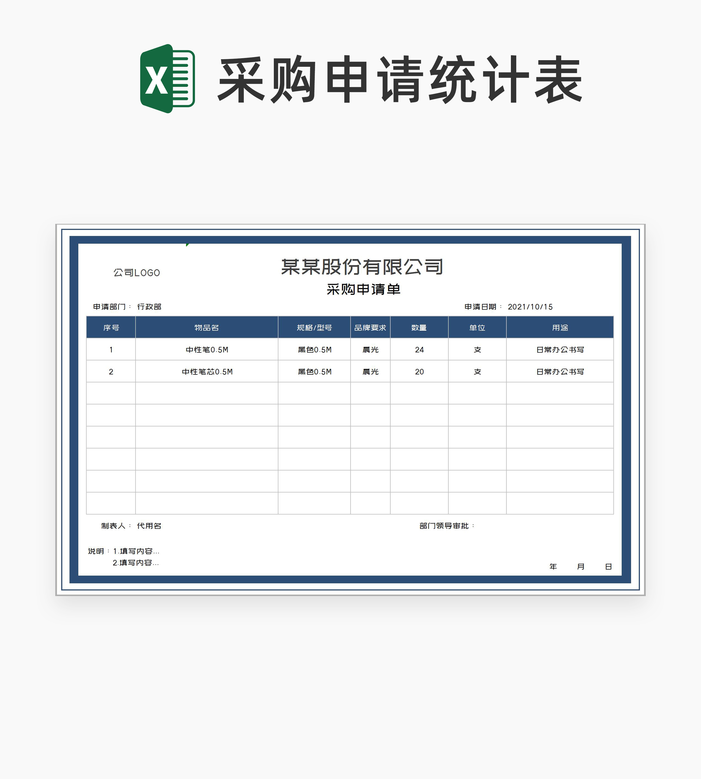 公司用品采购申请统计表Excel模板