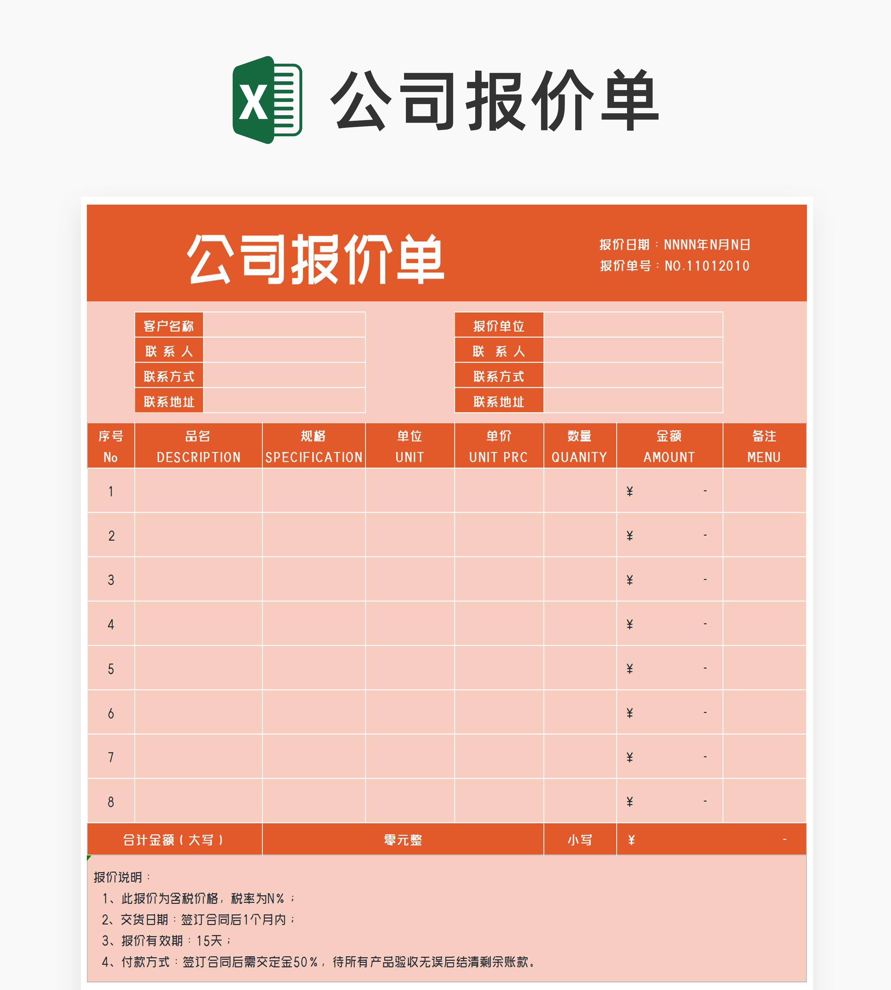橙色公司产品报价单Excel模板