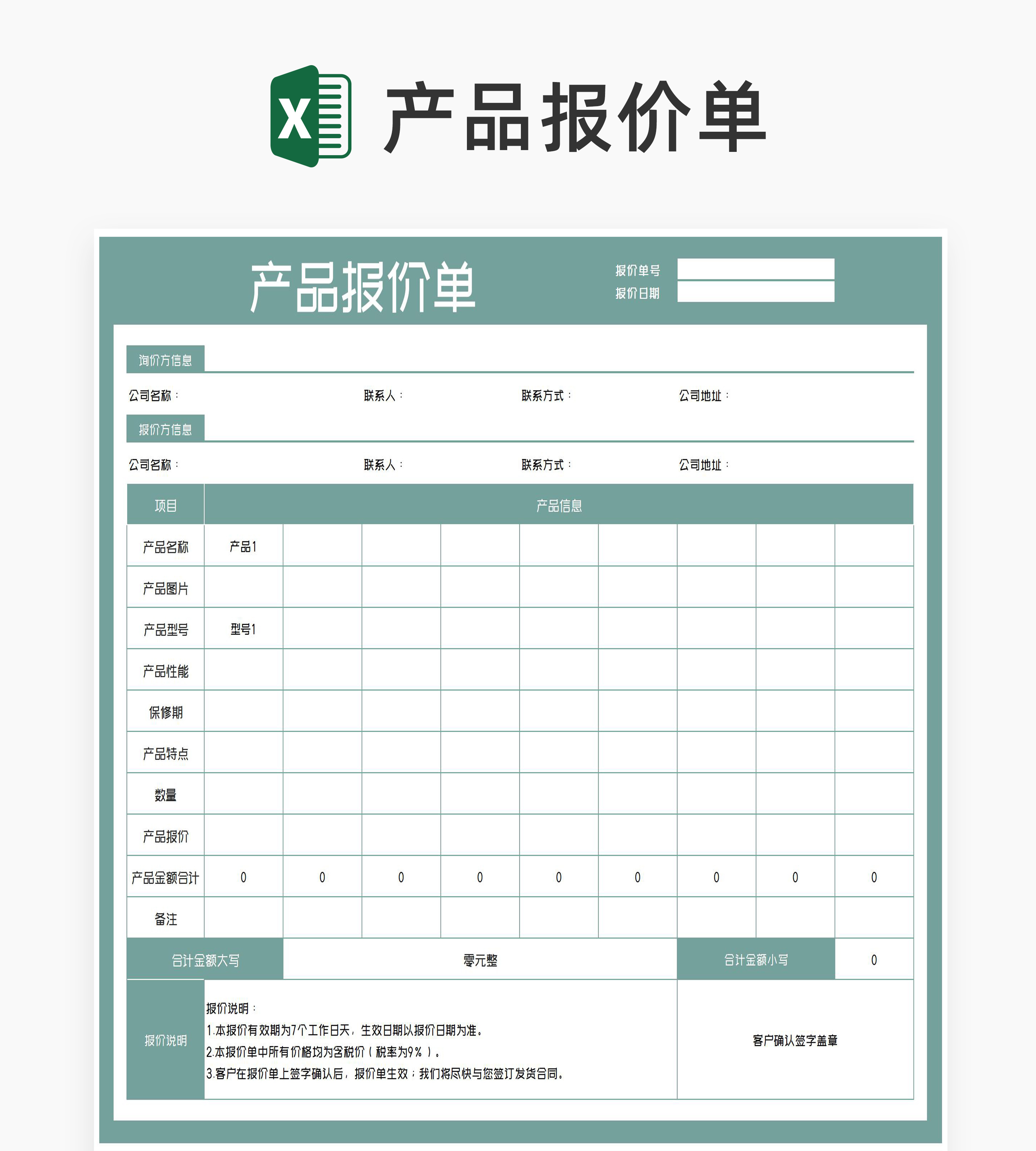 公司产品报价明细单Excel模板