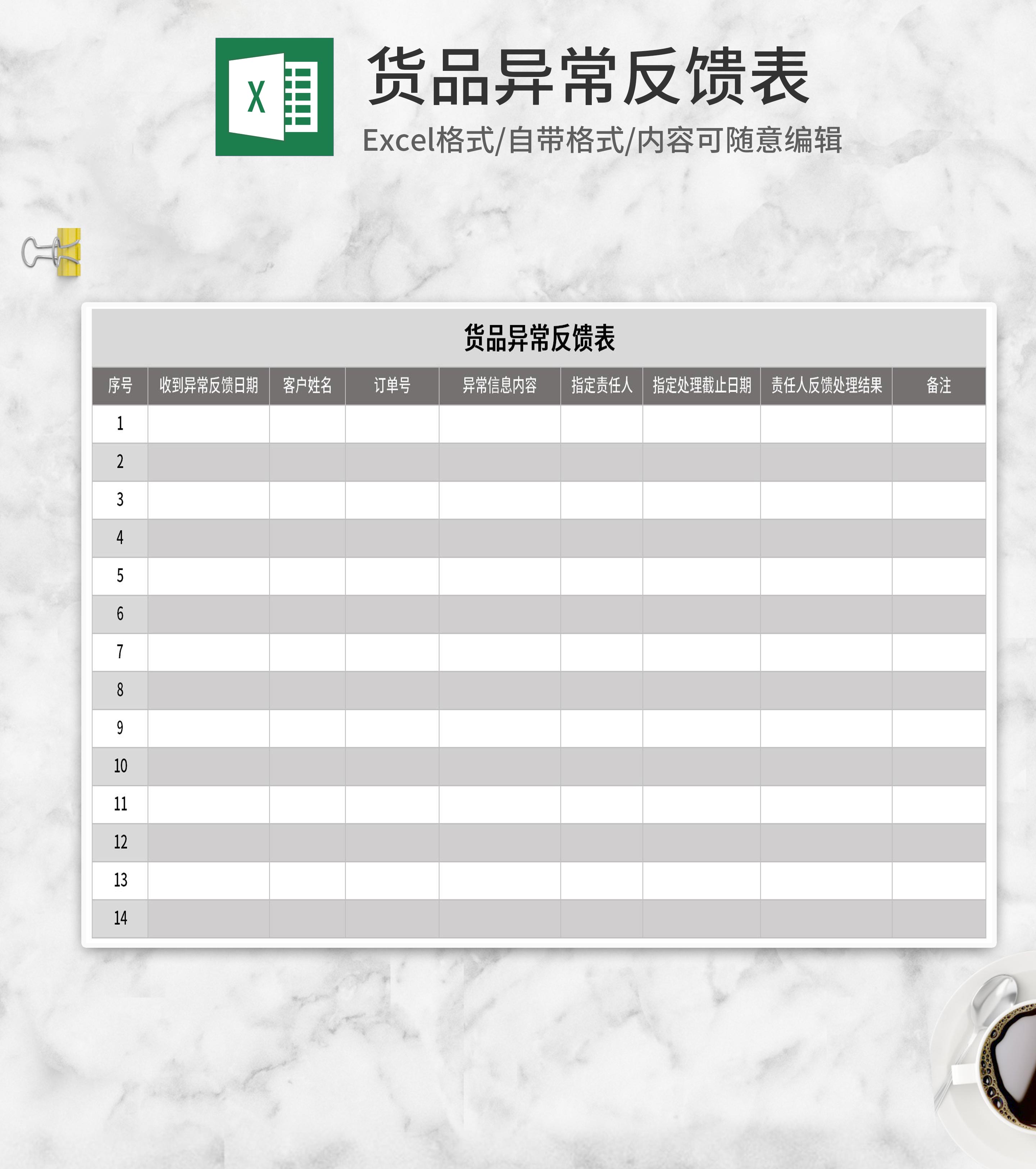 简约灰色货品异常反馈表Excel模板