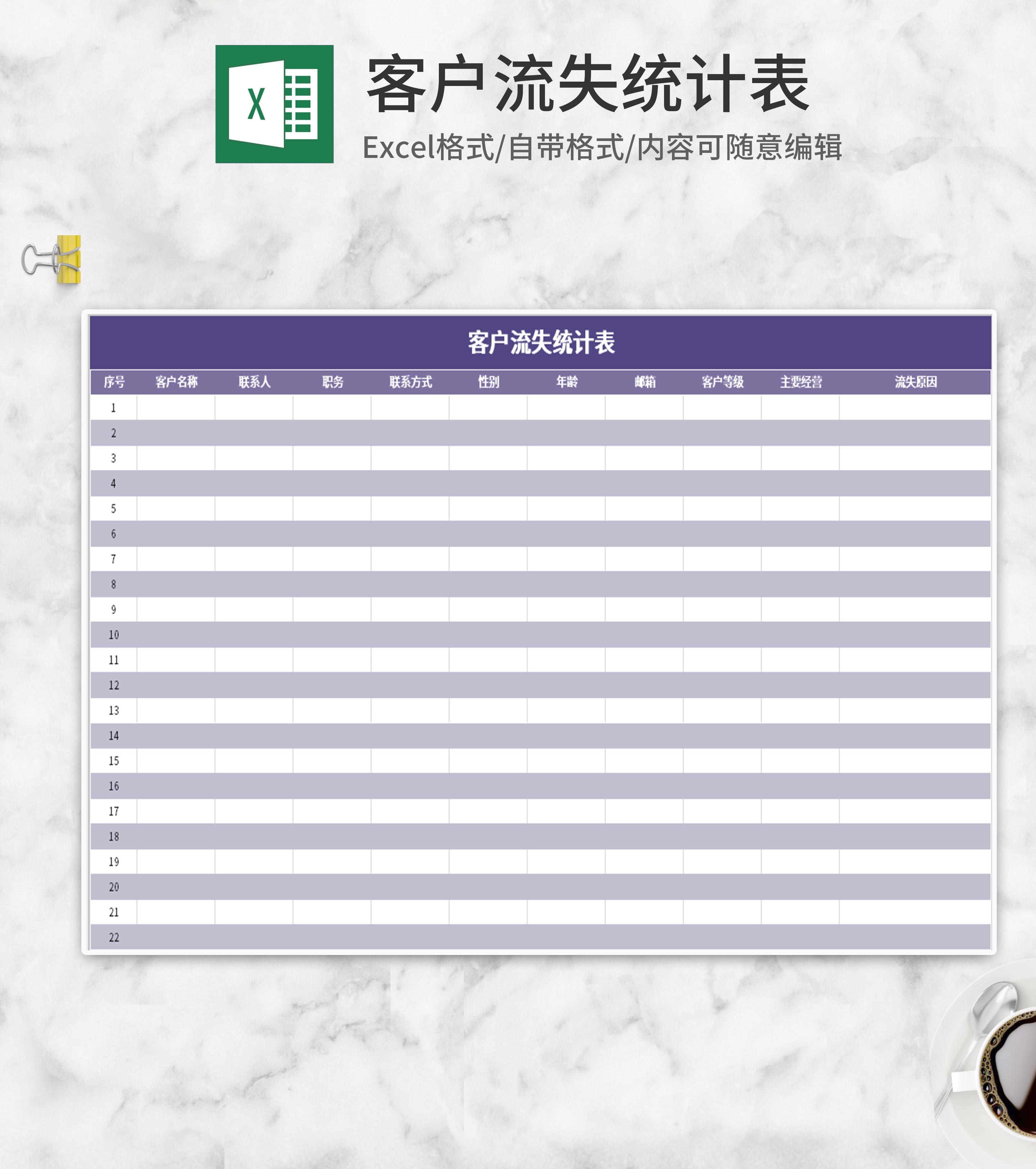 紫色客户流失统计表Excel模板
