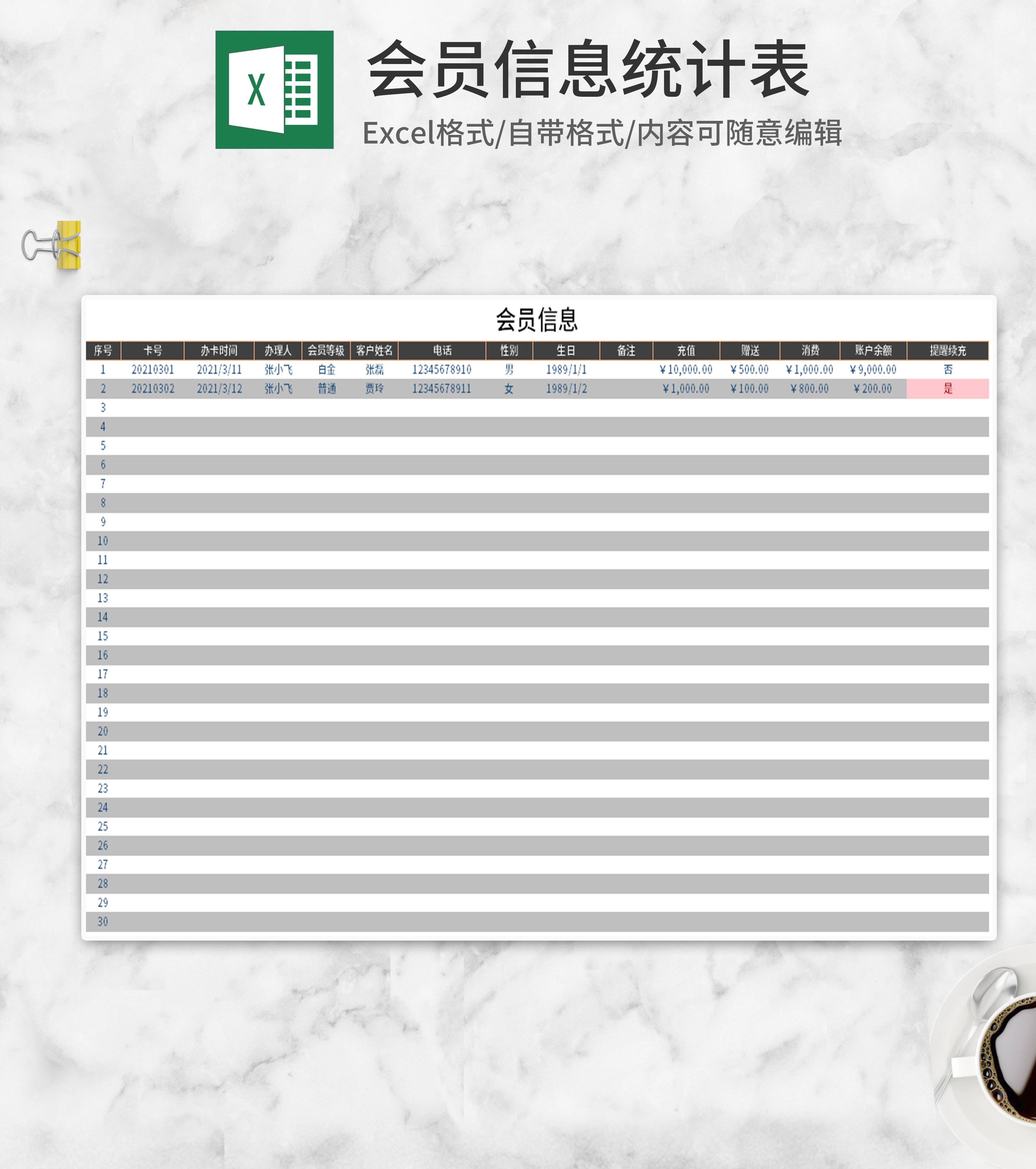 会员消费记录Excel模板