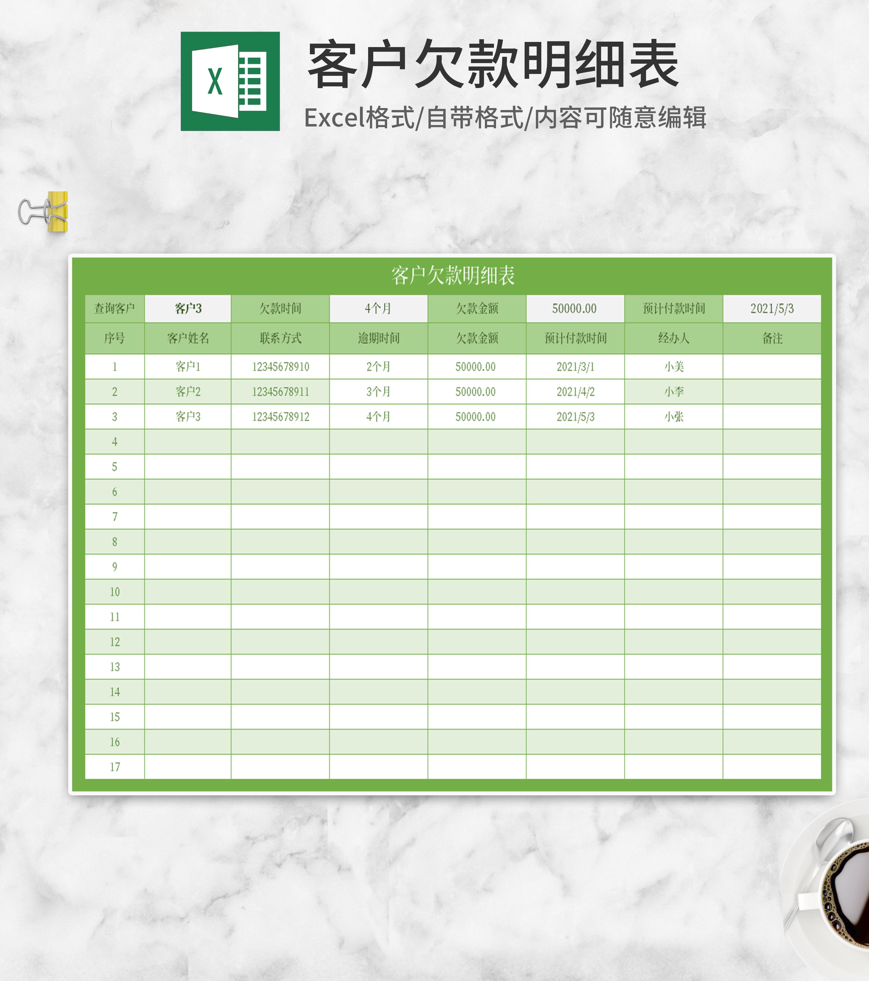 绿色客户欠款明细表Excel模板