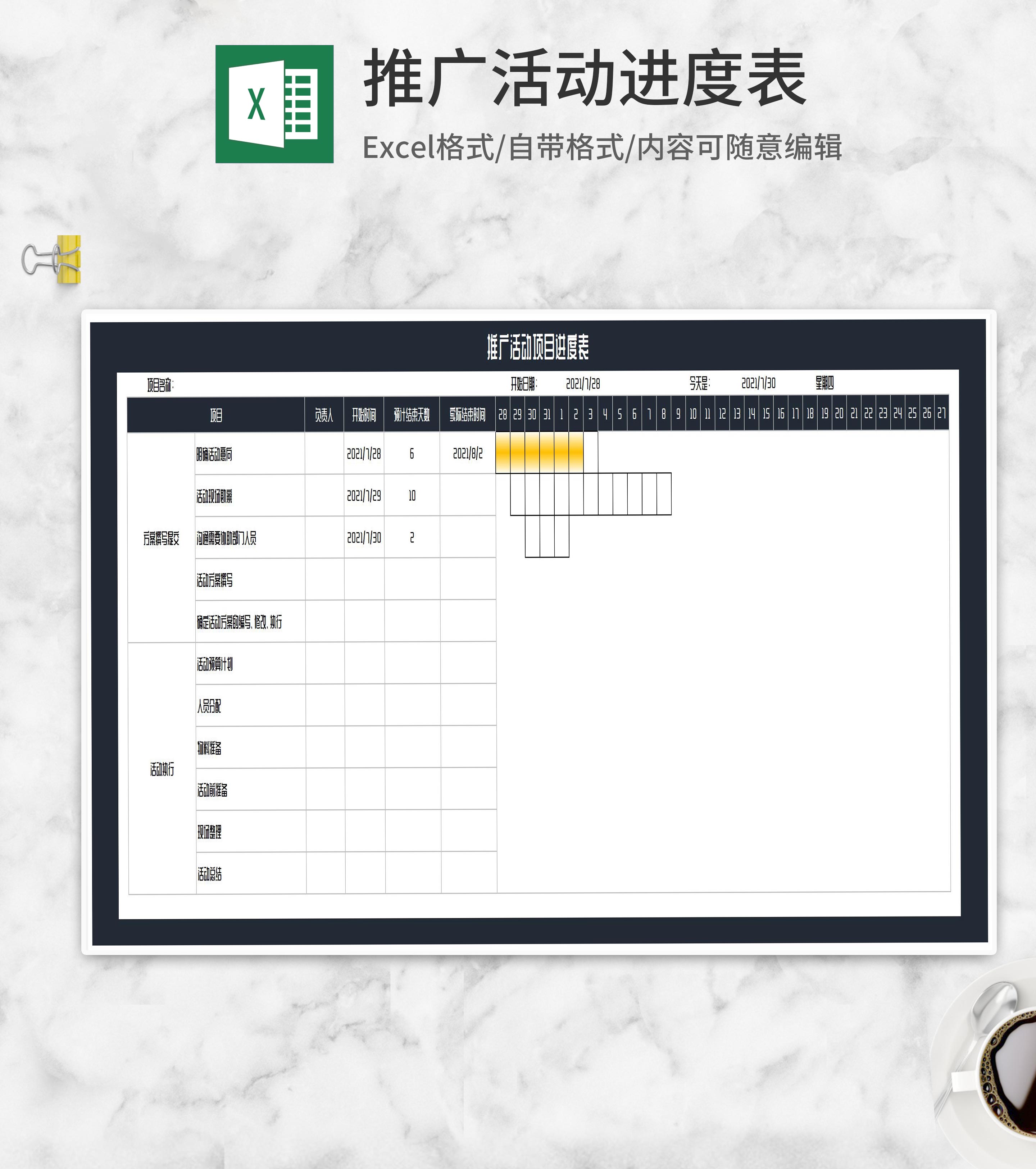 推广活动项目进度表Excel模板