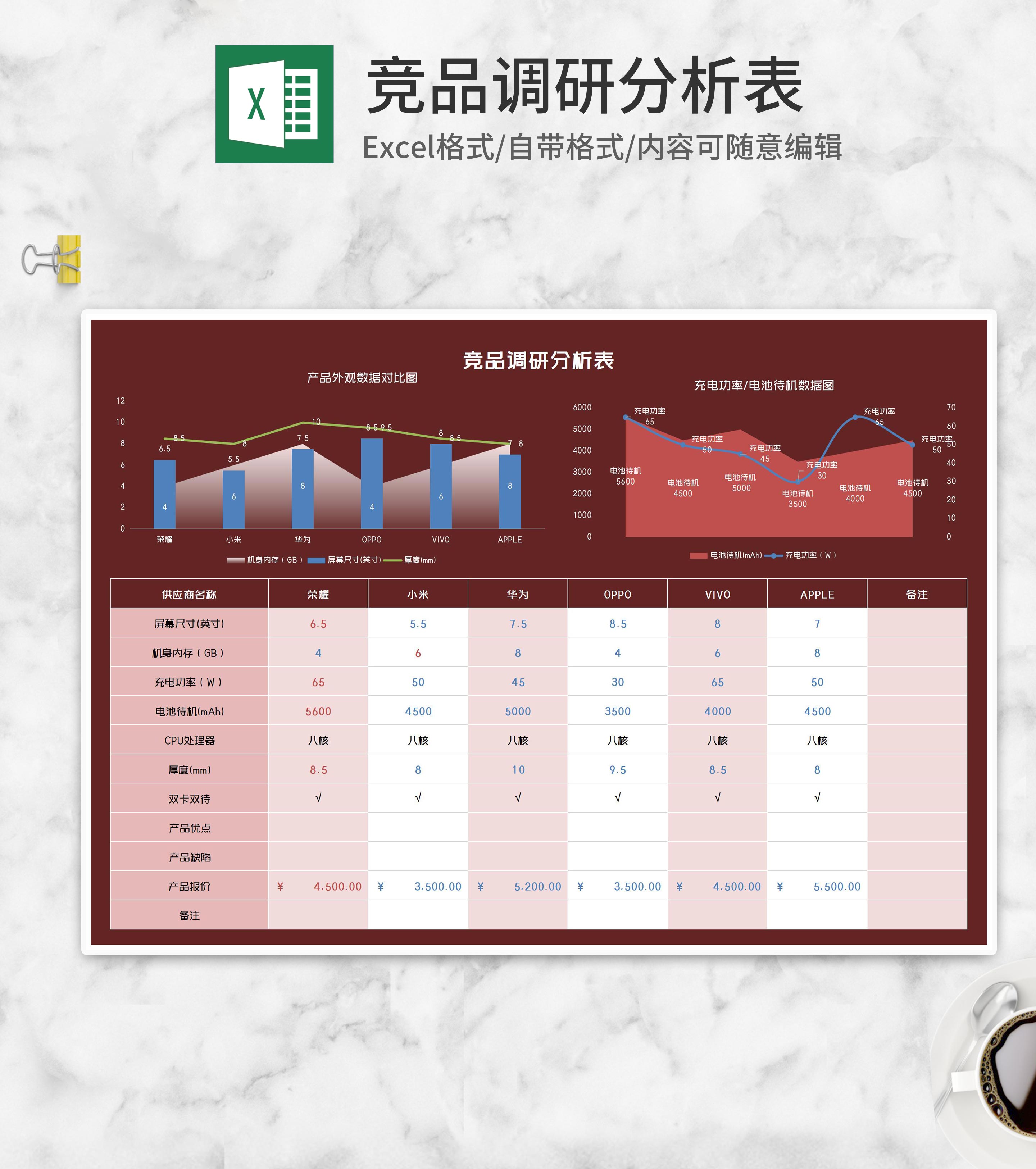 竞品调研分析表Excel模板