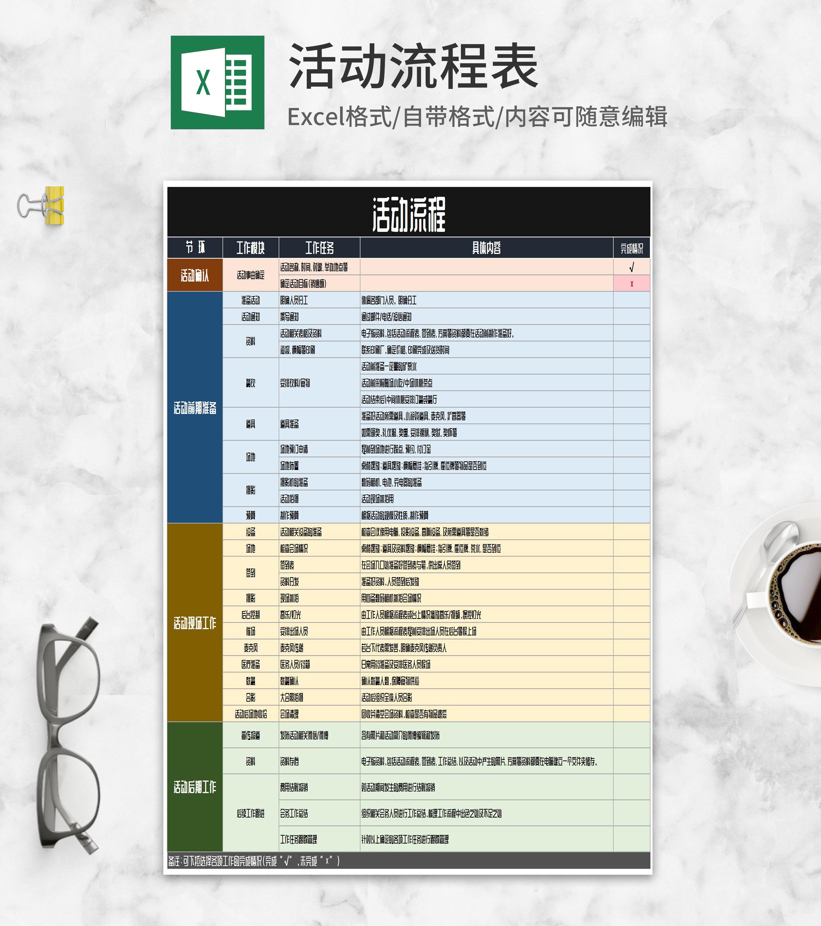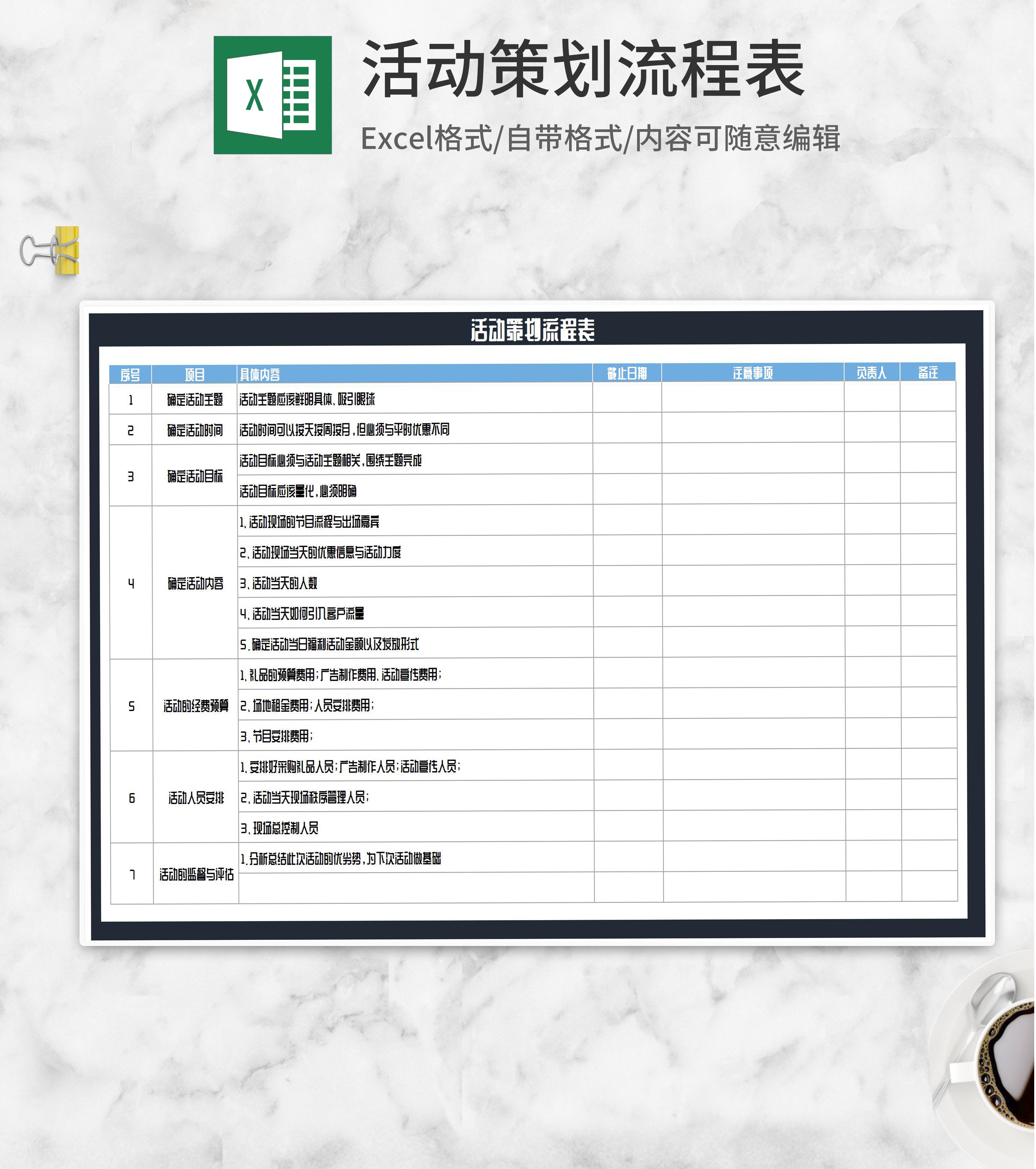 活动流程策划明细表Excel模板