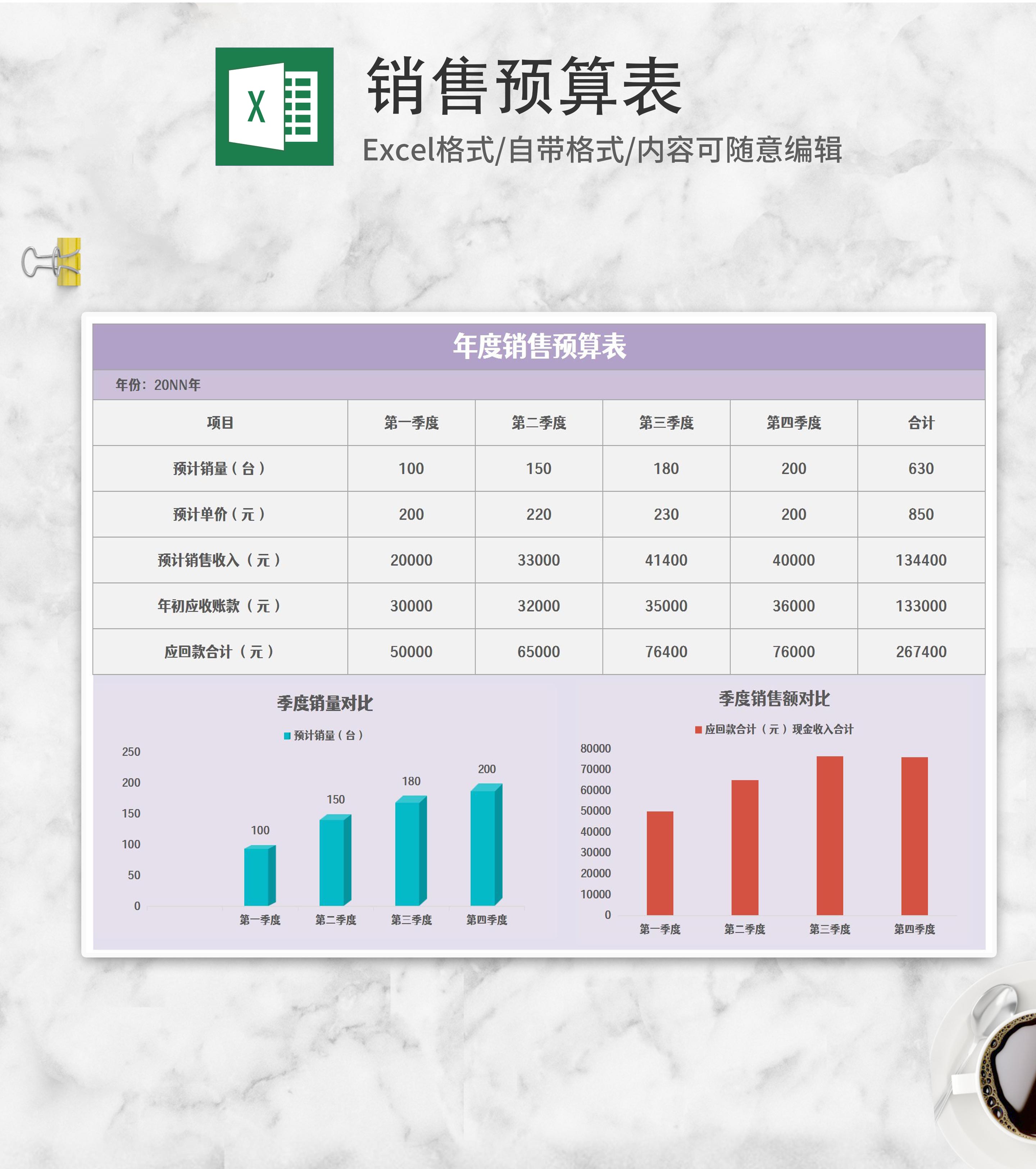 紫色年度销售预算表Excel模板