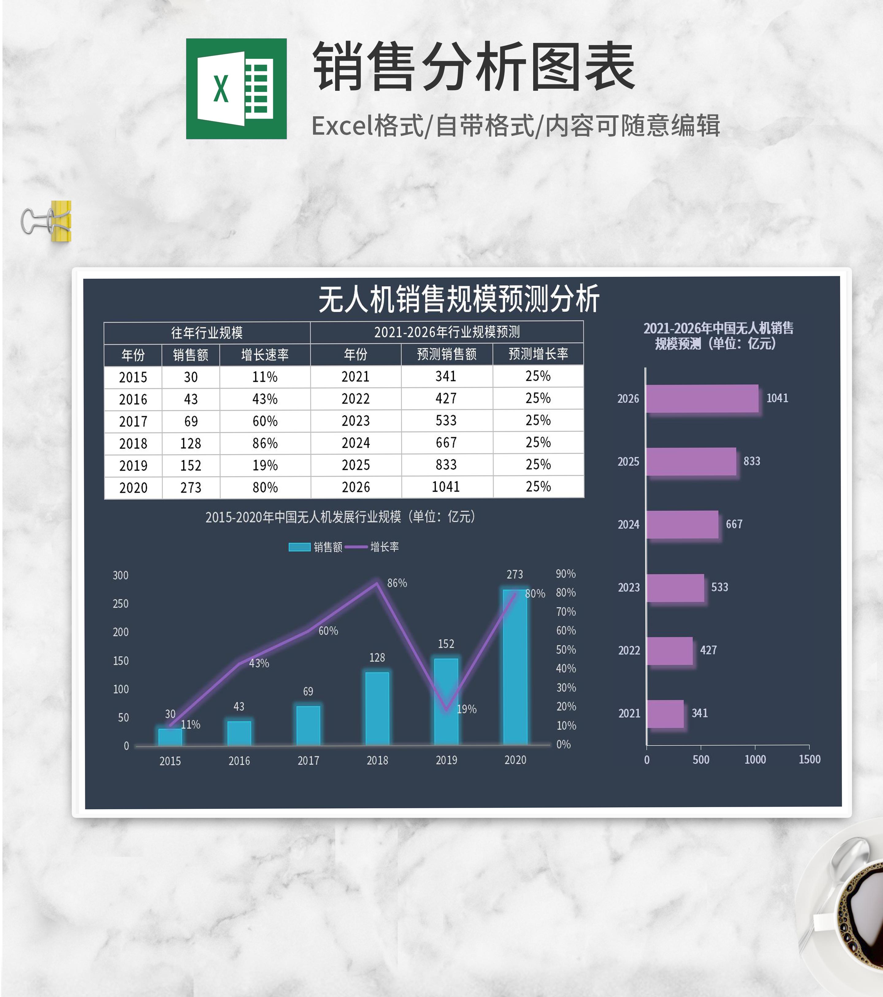 无人机销售规模预测分析Excel模板