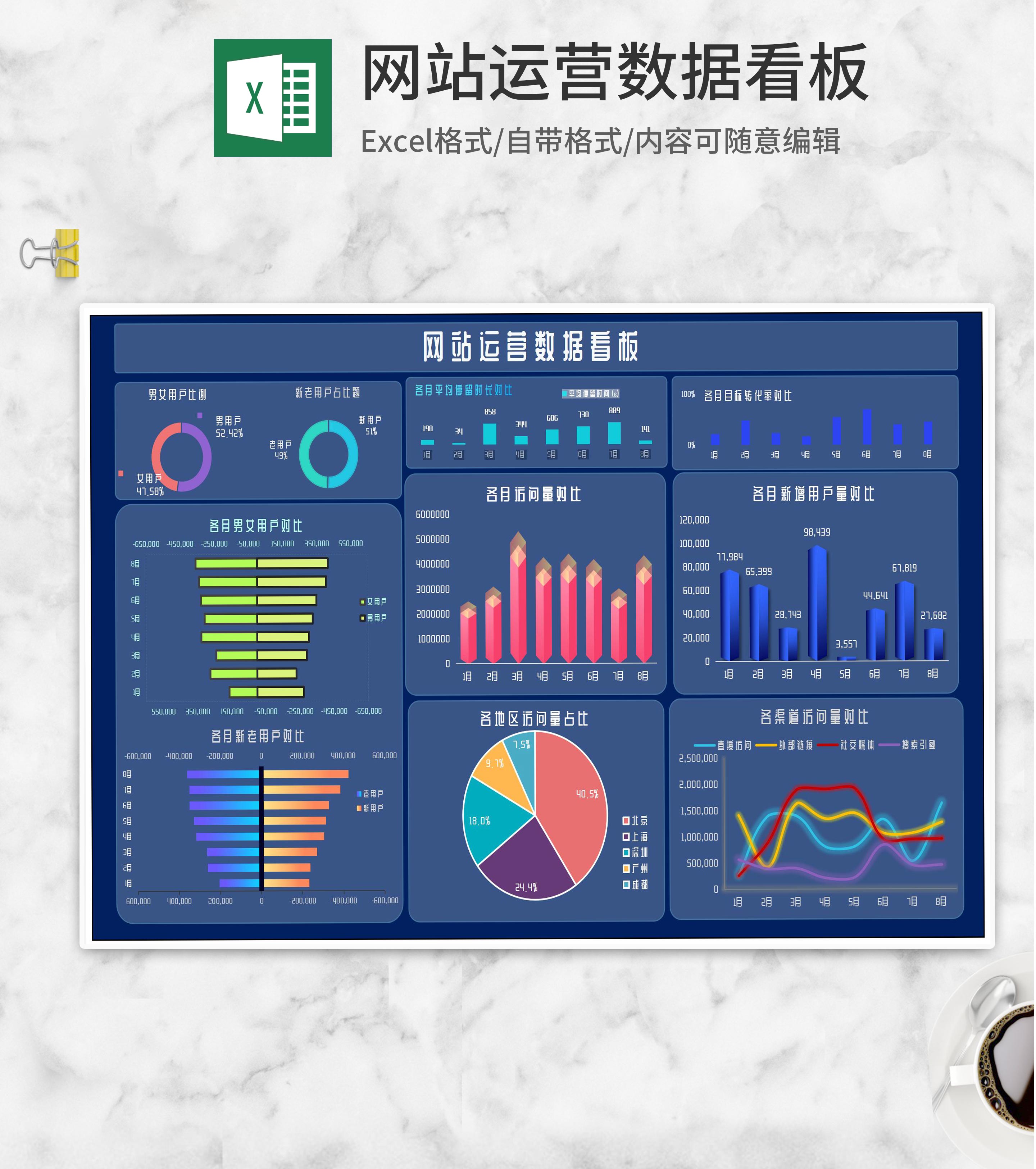 网站运营数据分析看板Excel模板