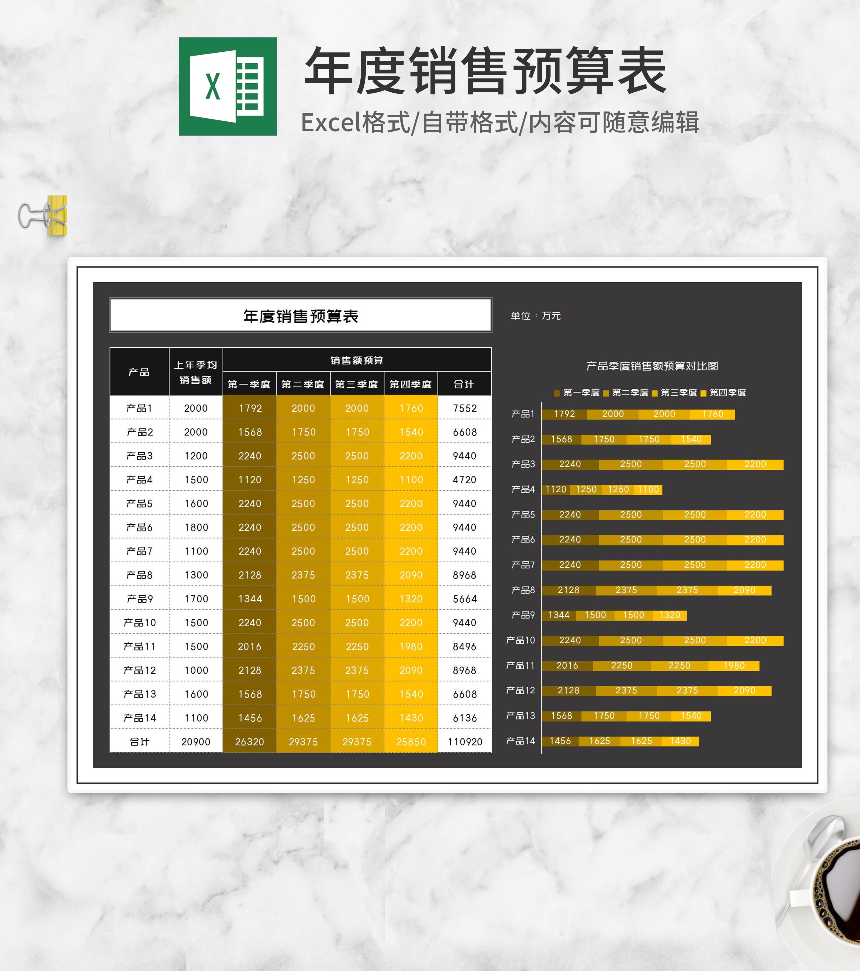 商务年度销售产品预算表Excel模板
