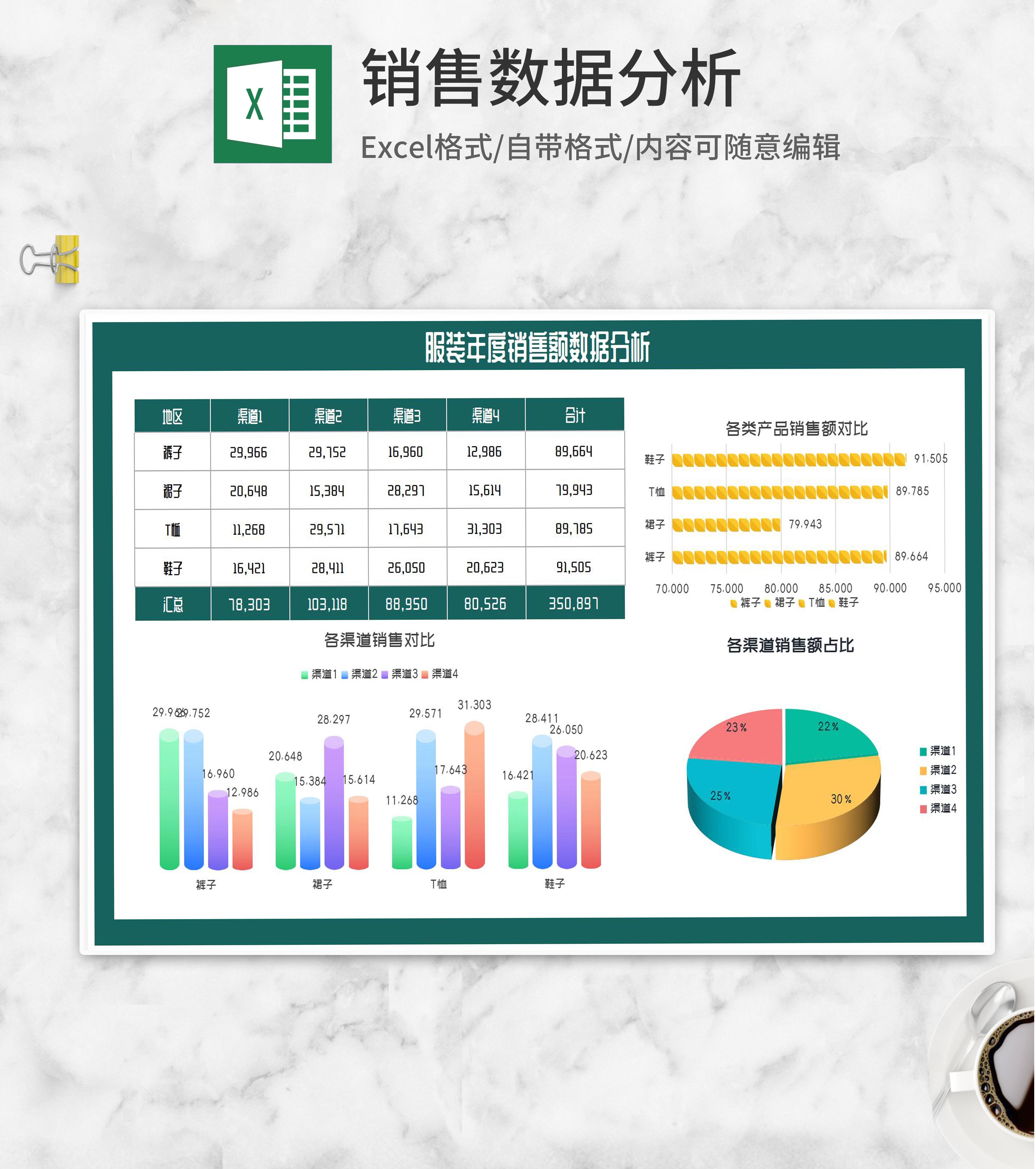 服装年度销售额数据分析Excel模板