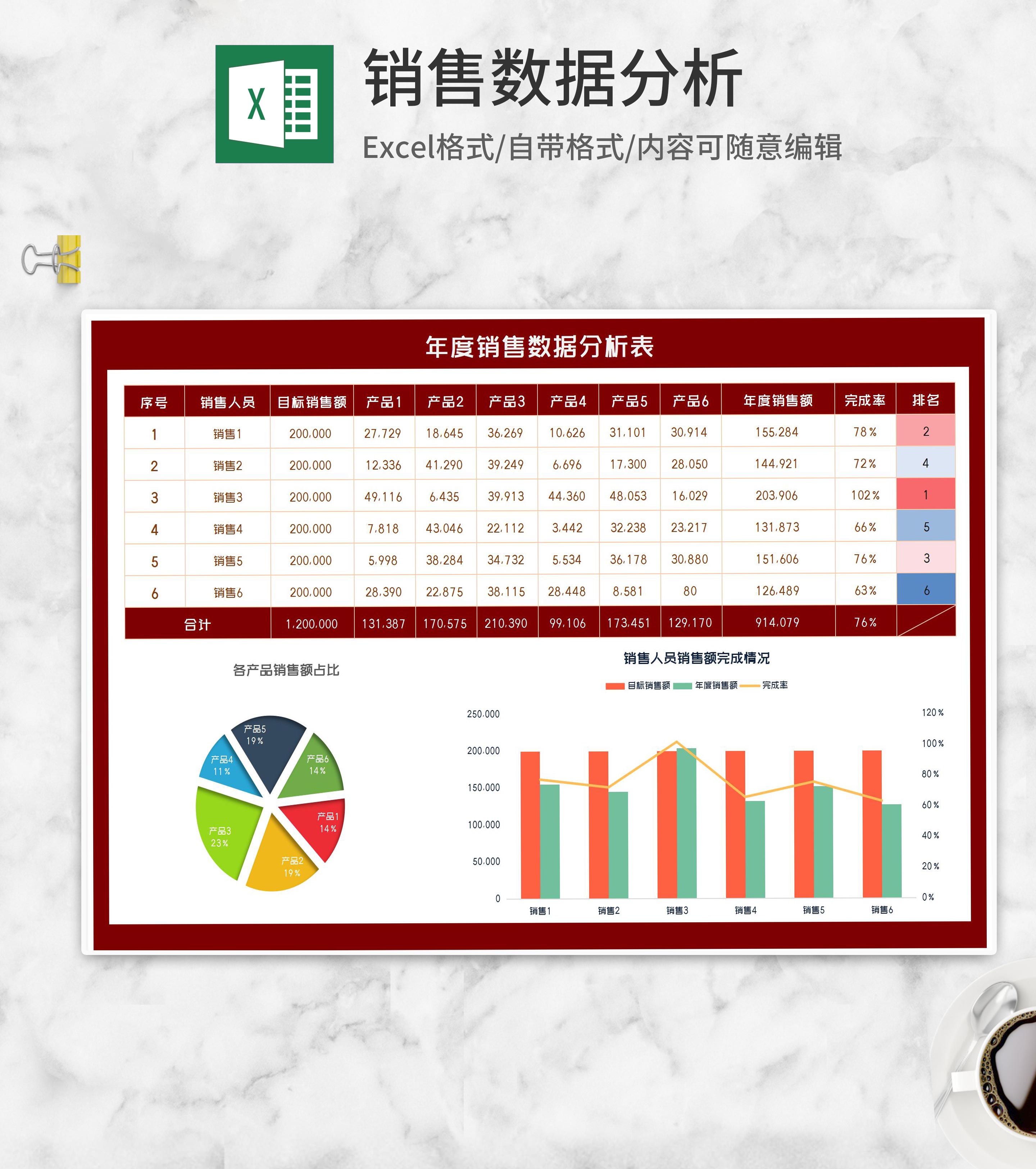 年度销售产品数据分析表Excel模板