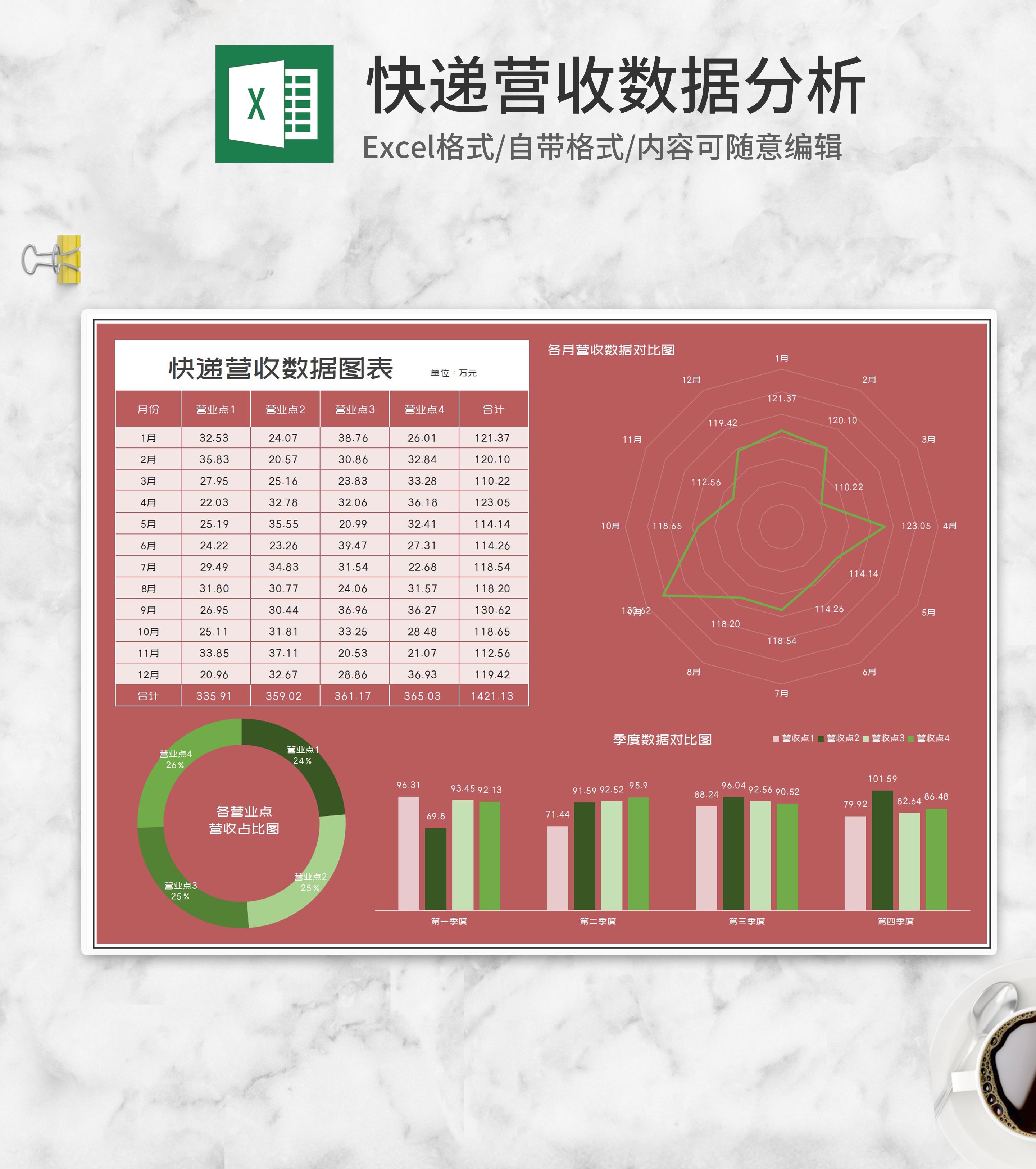 小清新年度快递营收数据图表Excel模板