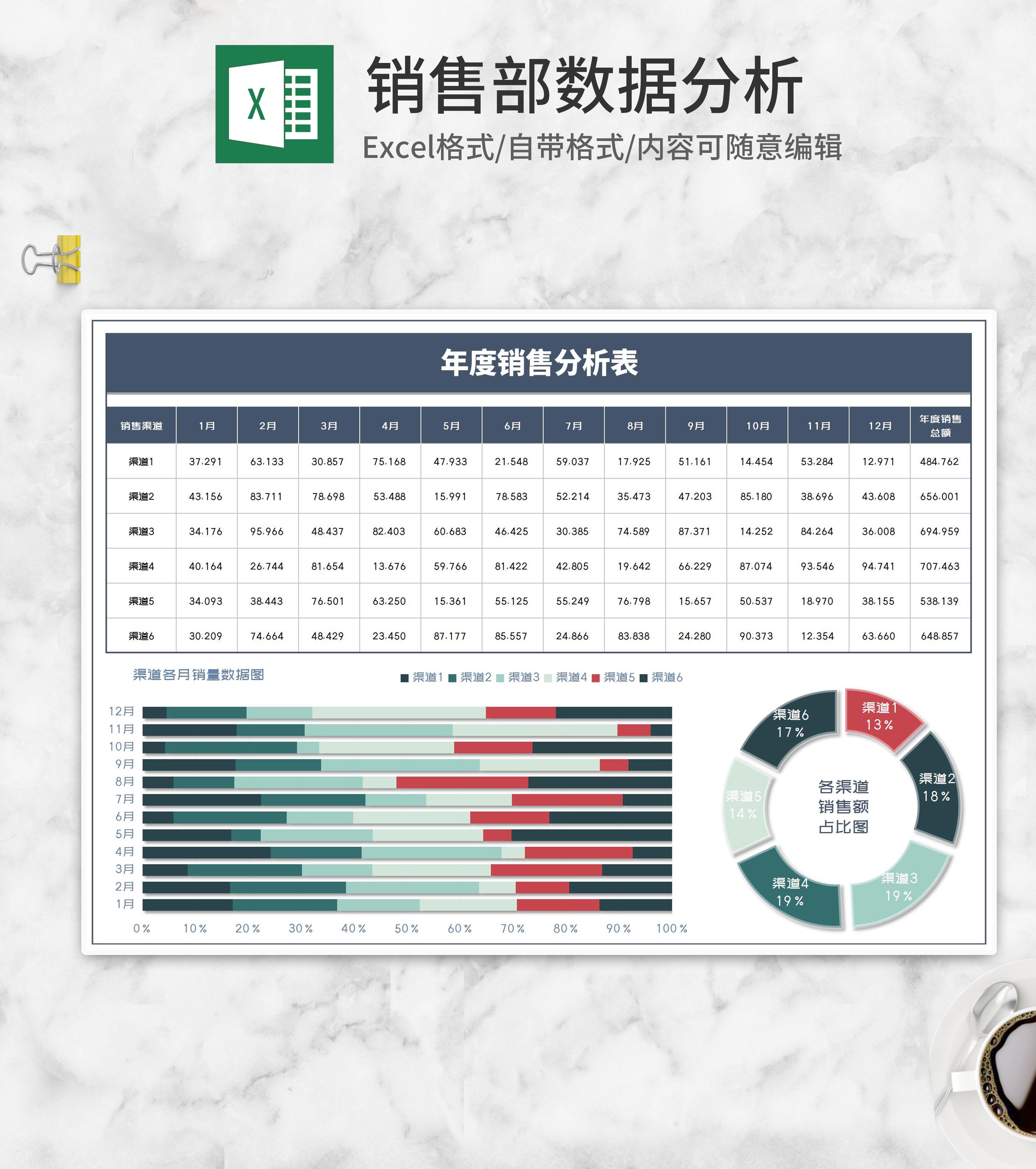 年度渠道销售汇总分析表Excel模板