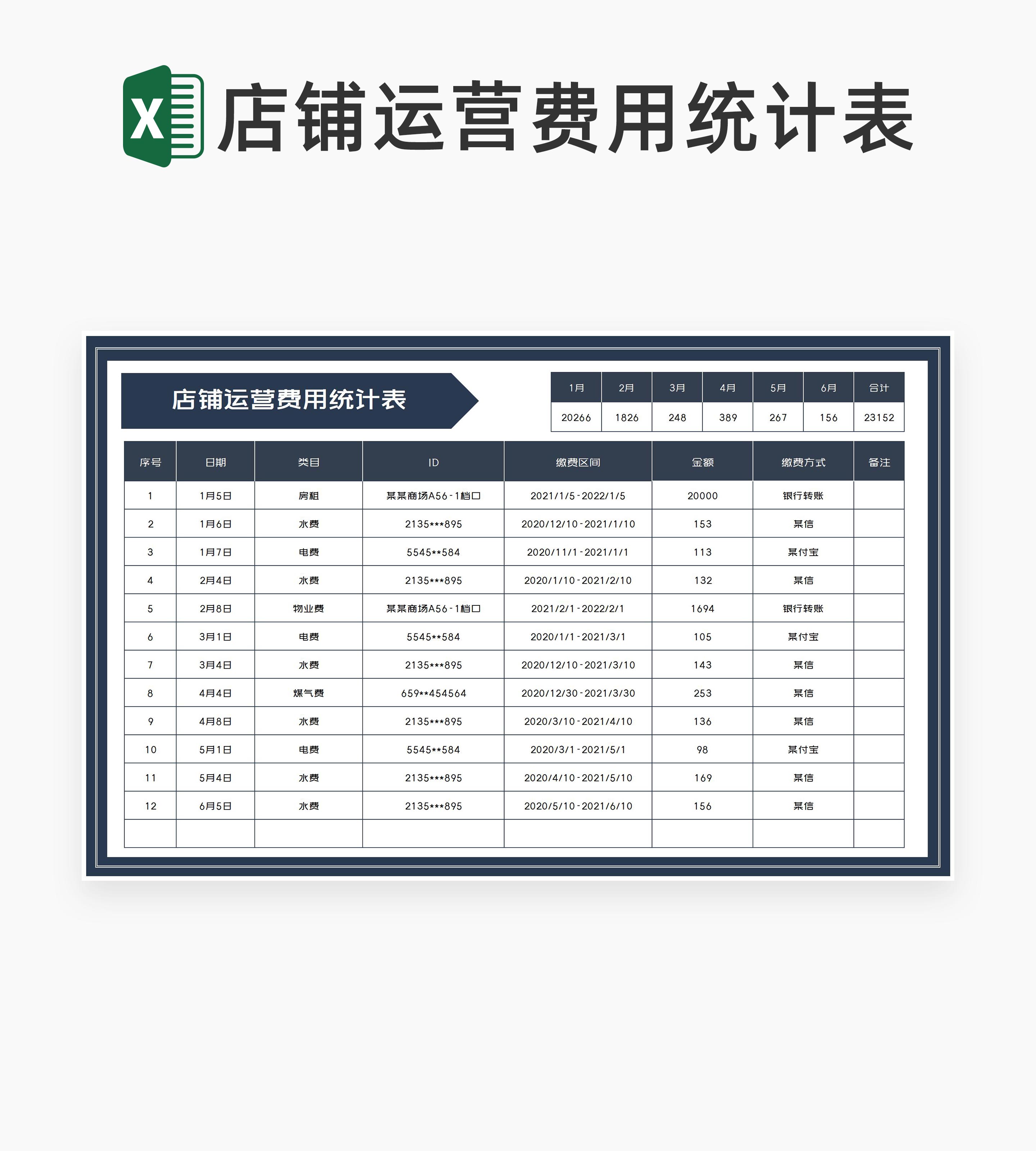 商务风深灰月度店铺运营费用统计表Excel模板