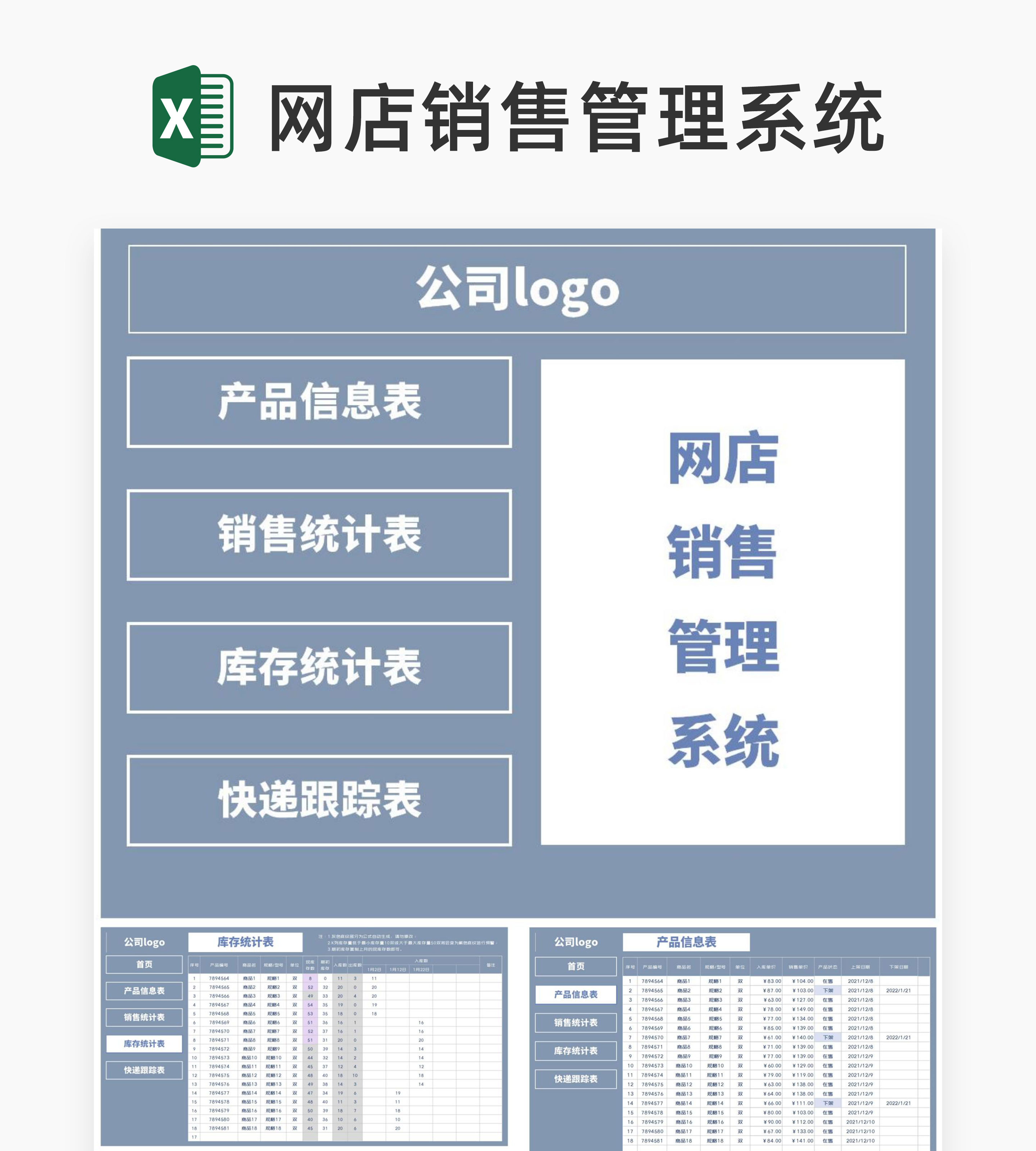 商务风网店产品销售管理系统Excel模板