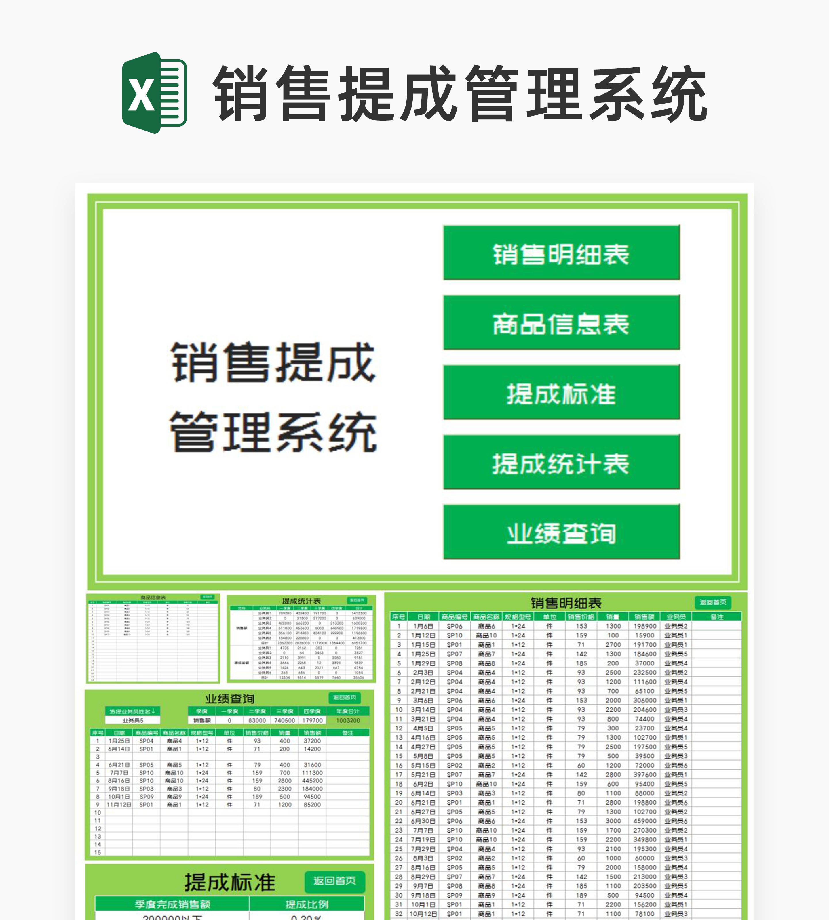 小清新绿色商品销售提成明细管理系统Excel模板