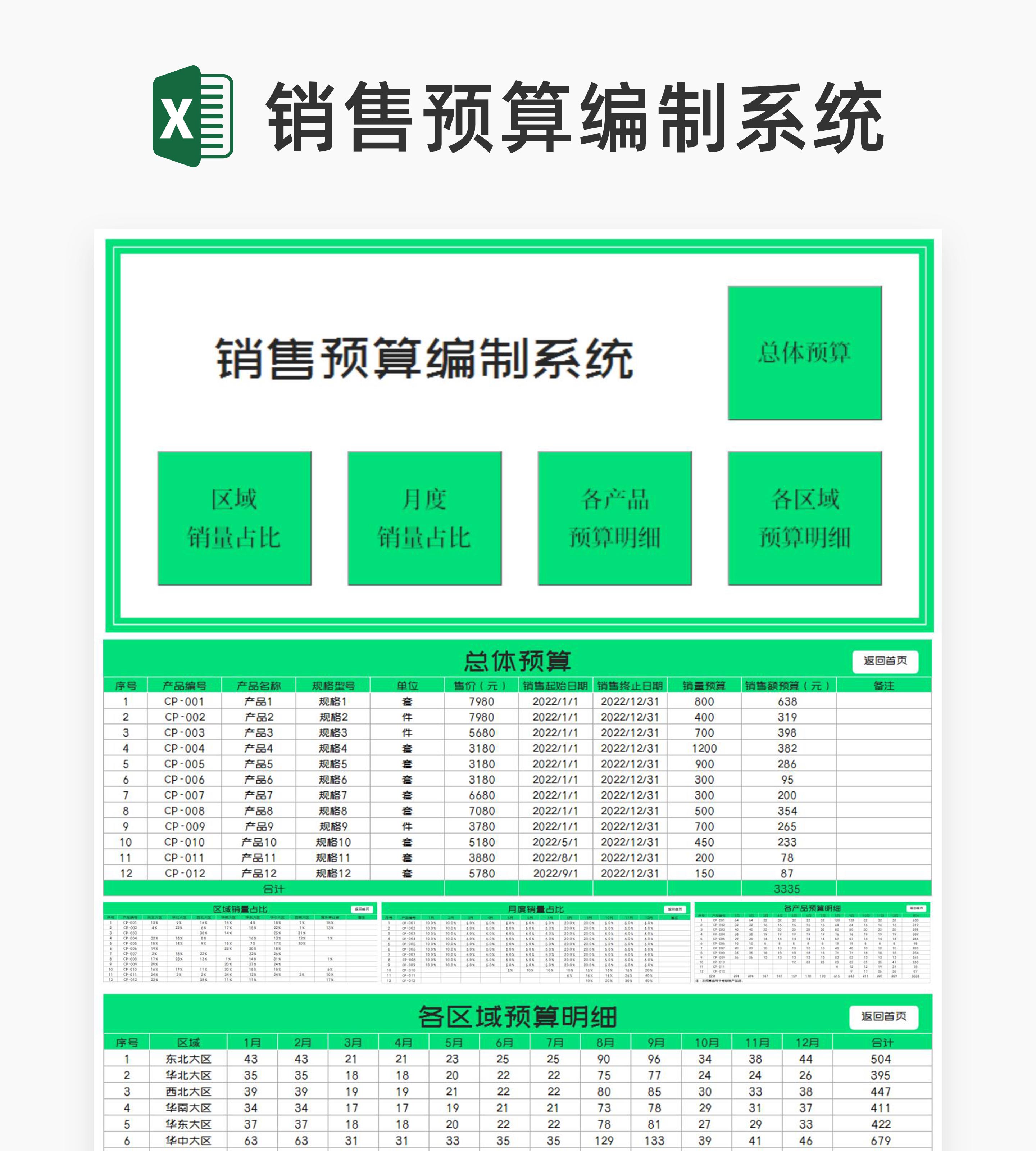 小清新绿色产品销售预算编制系统Excel模板