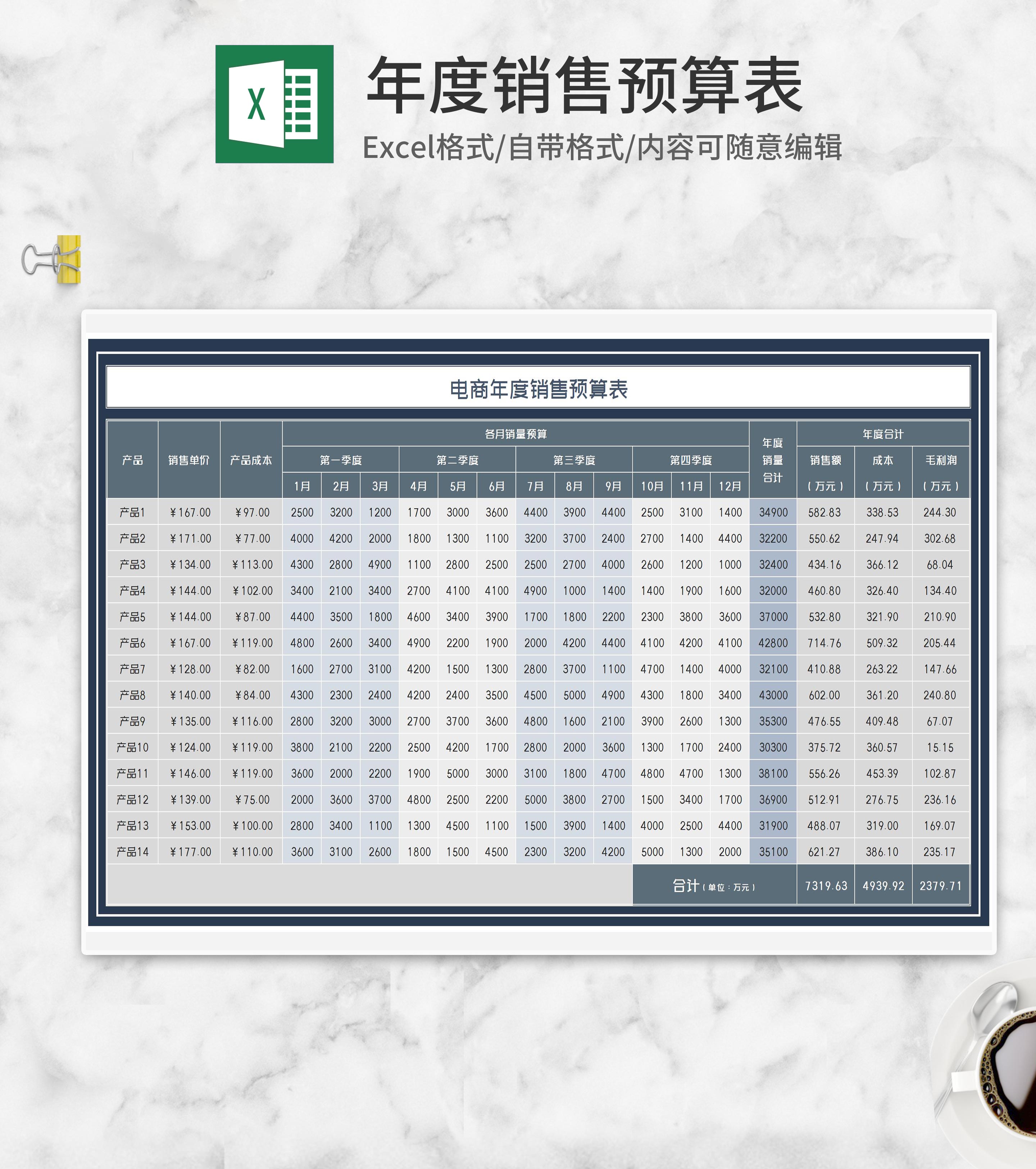 年度电商销售产品预算表Excel模板