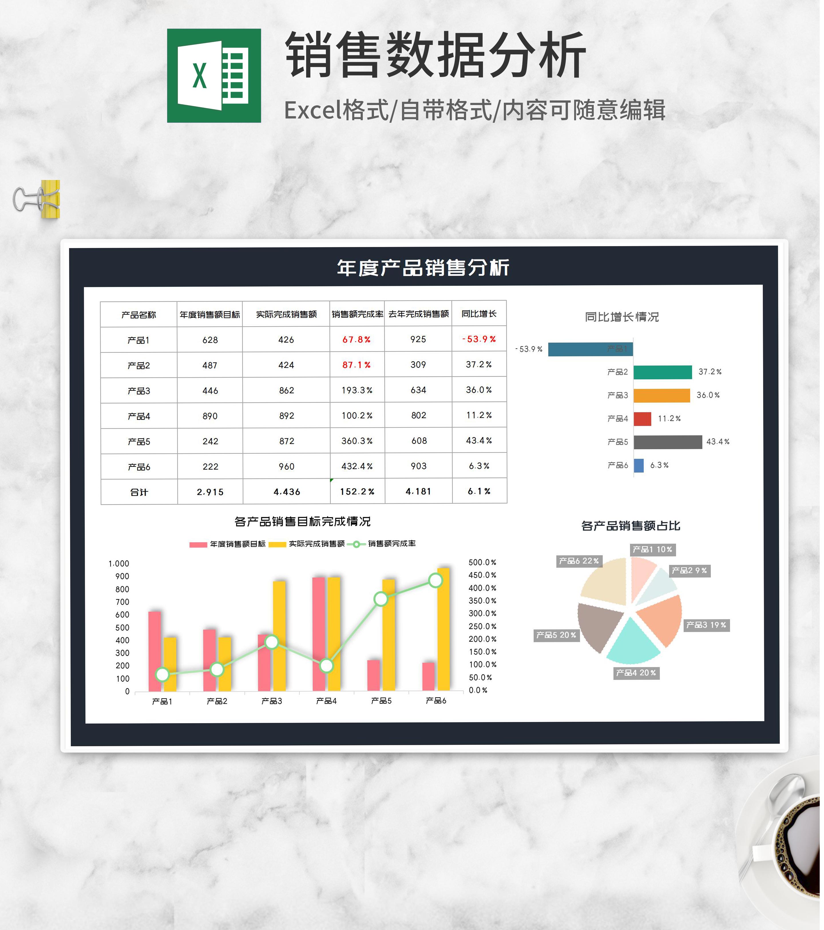年度产品销售分析报表Excel模板
